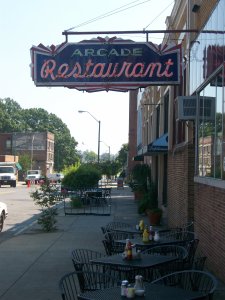 A couple of other things to see: the famous Peabody Hotel ducks taking their stroll from the fountain in the lobby to the elevator. They generate quite a crowd! And June and I had an early lunch today at the Arcade Restaurant on S. Main Street, a classic
