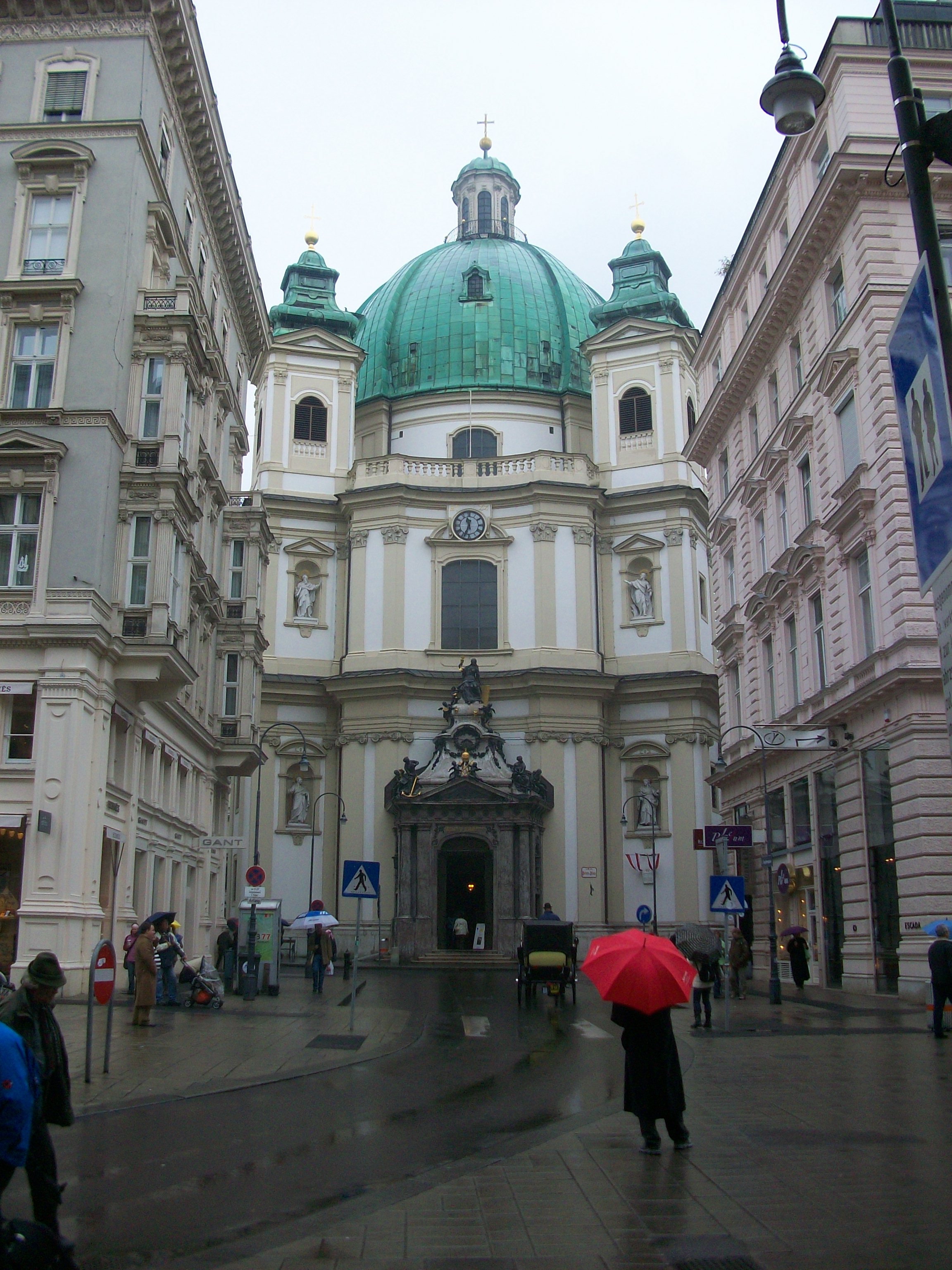 As promised, I’m posting a few additional photos from my travels to Vienna, Austria last week. The top two photos are a detail from Hofburg Palace and a view of St. Peter’s Church in the rain.