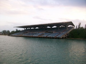First up was the 1963 Miami Marine Stadium. Arriving by boat while listening to the architect – Cuban born Hilario Candela who at age 27 designed this aquatic marvel with its zigzag concourse floating over the stands – was an incredible experience. It is threatened because the city sees the site as much more valuable for development, even though it doesn’t take a great deal of imagination to understand how this wonderful place could thrive again as a civic center for all South Florida. Watch the video at the end of the post to hear that quintessential South Floridian – Jimmy Buffett – talk about why this place matters.