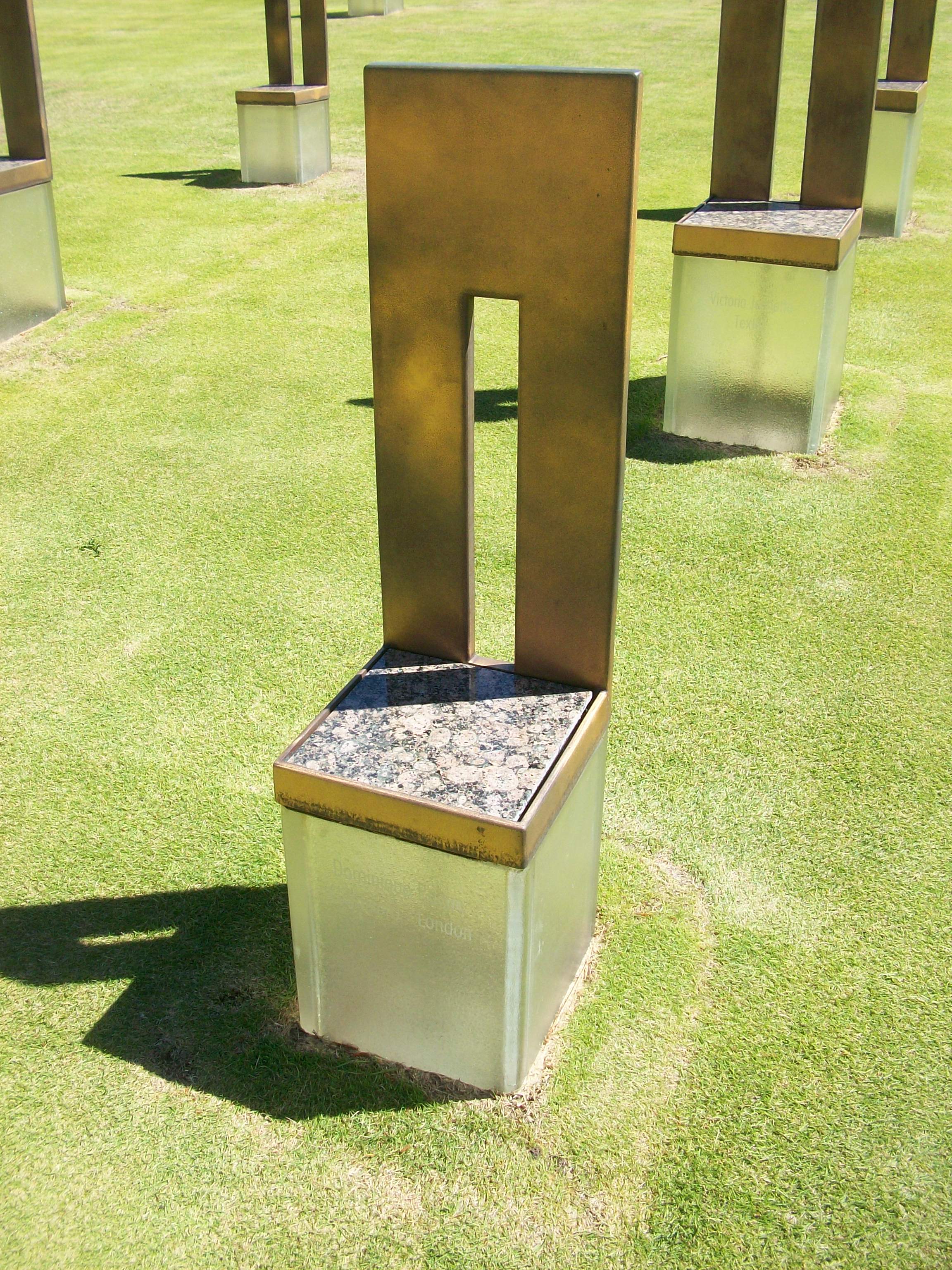 One enters the outdoor symbolic memorial through a gate marked 9:01 – the minute before the bombing – to represent the innocence of the city. At the other end of a reflecting pool, the west gate is marked 9:03, after everything changed. The best known feature of the memorial is the field of empty chairs, 168 in all, each to symbolize a life lost. The smaller chairs especially tear at the heart, representing the 19 children or babies killed.