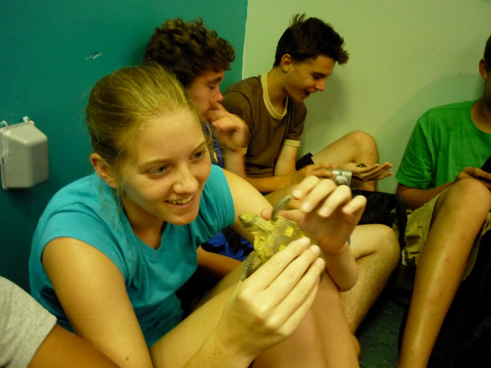 Claire examines a tortoise at Sanibel – July 2010