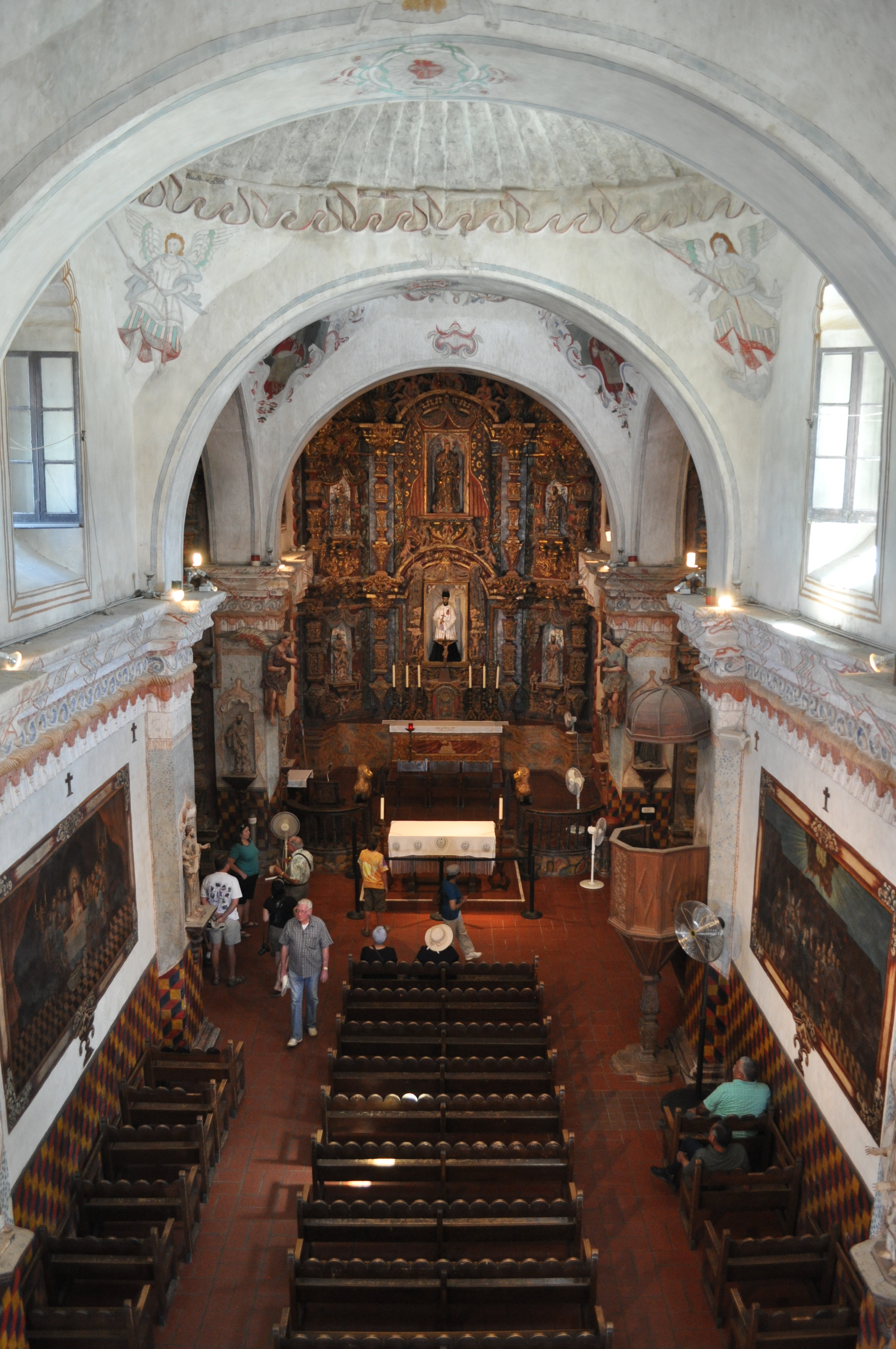 This is – simply stated – a spectacular building of international importance, with masonry vaults and beautiful interior artwork, the latter restored after $2 million was raised by the local community. Little is known about the artists – most likely from Queretero in current-day Mexico – but their work mixes New Spain and Native American motifs. The architect, Ignacio Gaona, designed what many consider to be the finest example of Spanish mission architecture in the United States.