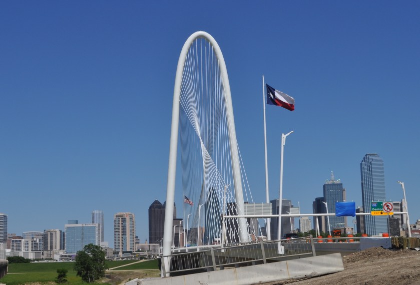 I was heading out of Dallas to Ft. Worth this morning, when I caught a glimpse of a signature white bridge crossing the Trinity River. Could it be a Calatrava?