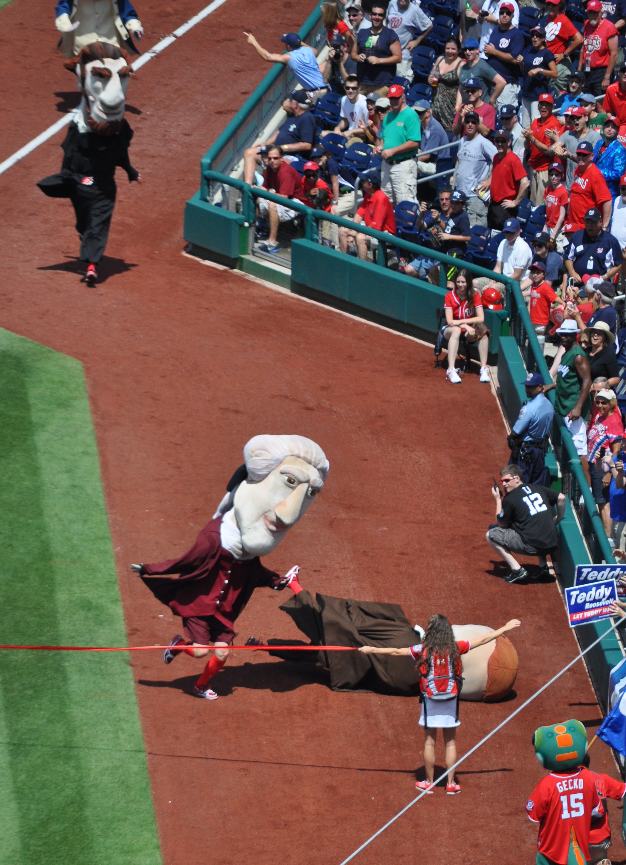Yes, Thomas Jefferson wiped out George, Abe, and finally Teddy with a series of pretty impressive body checks before crossing the finish line at the head of the pack. But on a beautiful Father’s Day in Washington, the home-standing Nationals couldn’t match Tom’s effort and come up with the timely hits they needed. Unfortunately, they also made a couple of uncharacteristic blunders that led to a 4-1 Yankees win and a sweep of the weekend series.