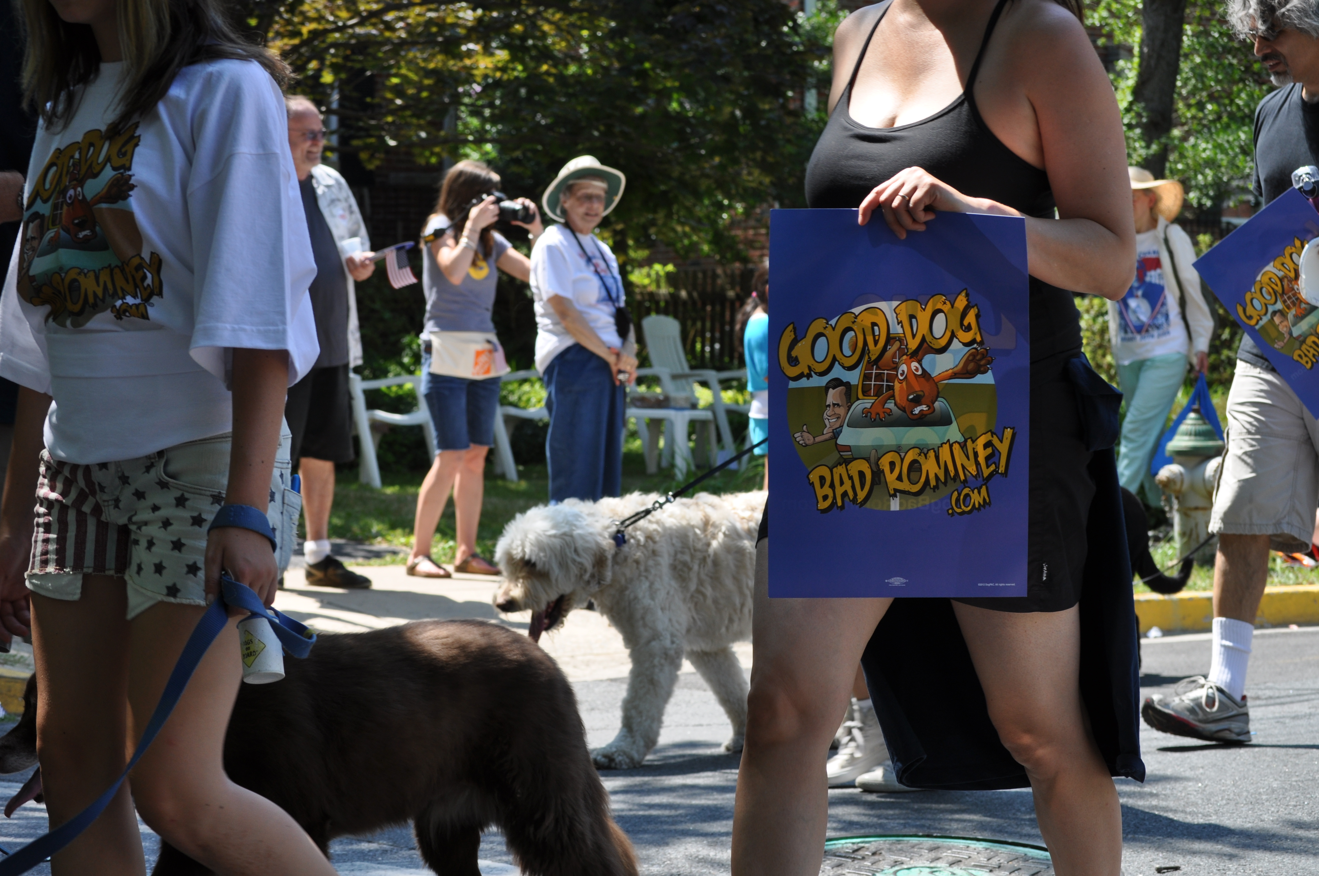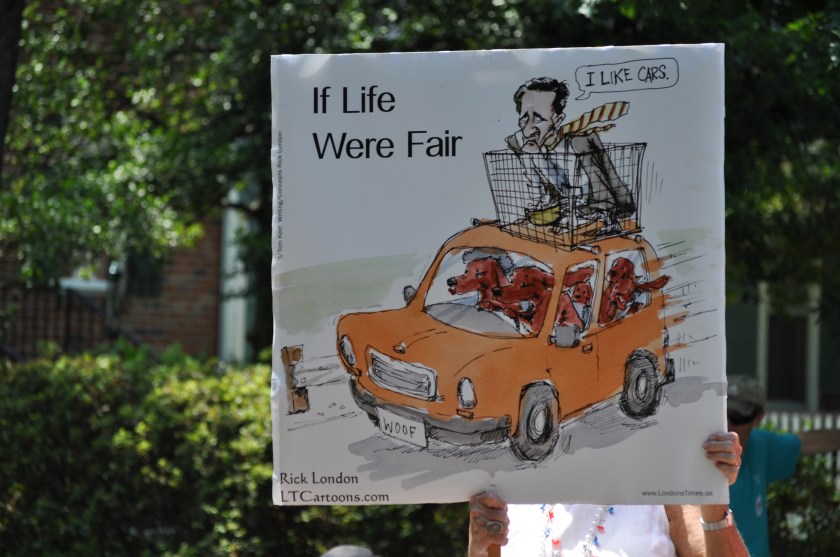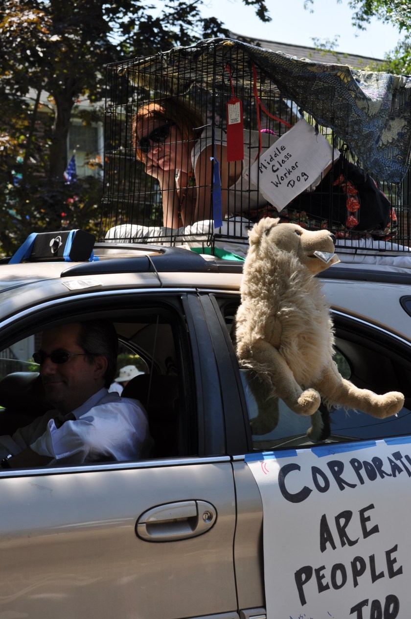 But the real fun begins with the political theatre that’s always in evidence in Takoma Park. This year there was a satire on the Tea Party, and many references to Mitt Romney’s poor dog Seamus and his ride to Canada on the roof of the car.