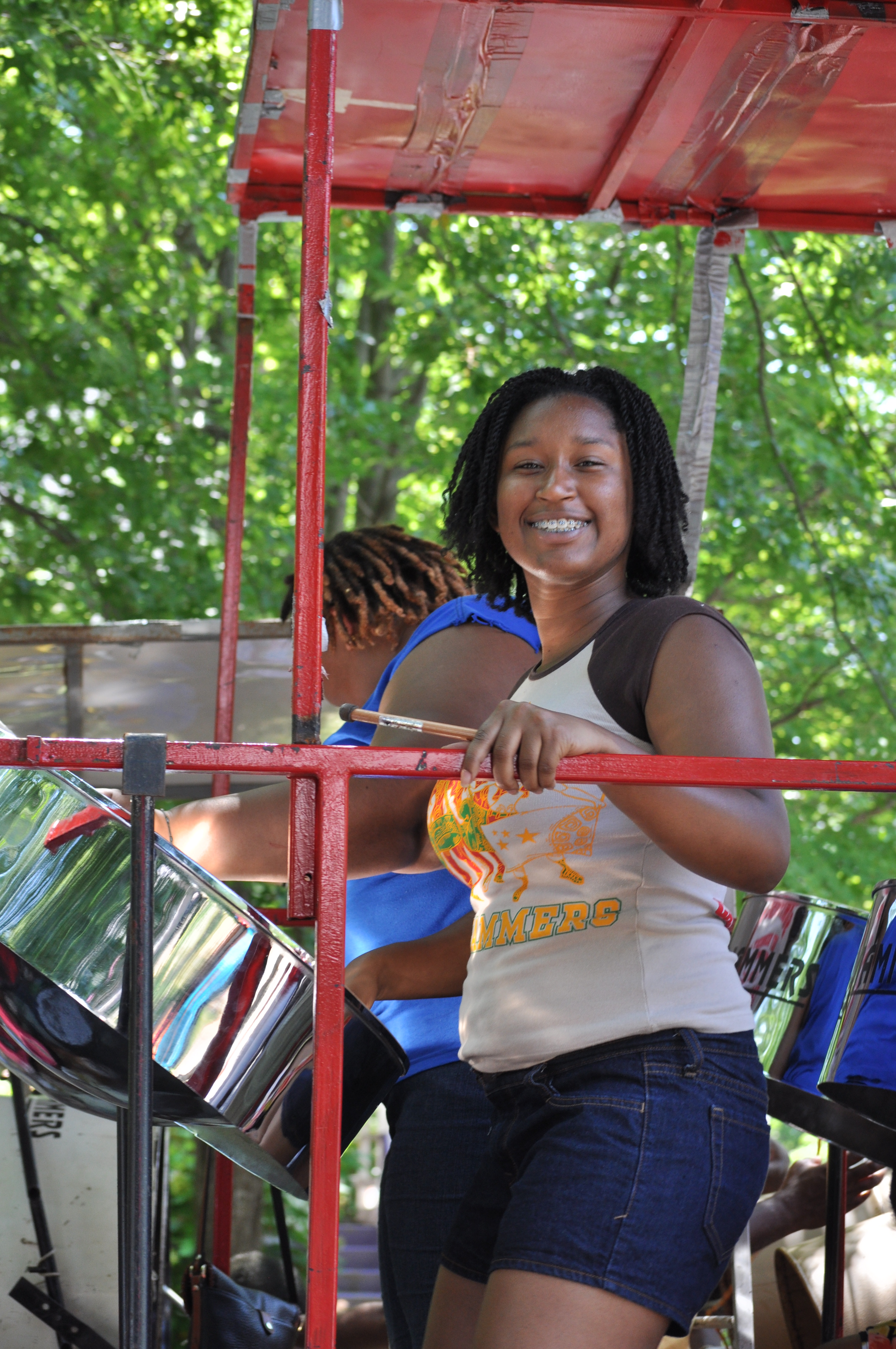 Takoma Park also has an abundance of steel drum units and brightly dressed dancers. Claire swore she knew the popular songs the drum units were playing. To my ear they all sounded alike, but set your feet to dancing nonetheless.