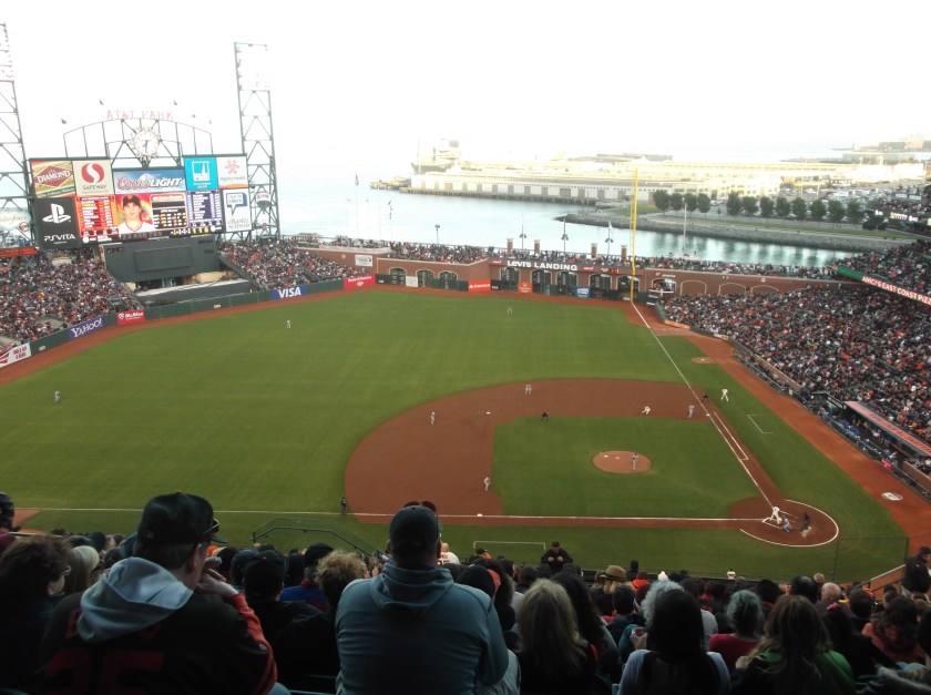 Earlier this week, I finally added another to my “ballparks visited” list when I went to San Francisco’s AT&T Park with colleagues and friends. This was an especially meaningful visit, as I grew up as a Willie Mays and Giants fan. So the first stop – as seen at the top of the post – was by the Willie Mays statue in front of Willie Mays gate. The Giants have done a great job of recognizing their players from the past, not just Mays, as important as he is to the history of baseball. Orlando Cepeda was in the house and looking dapper as he handed out an award to Melky Cabrera before the game. Every left-handed batter who steps into the box tries to hit a “splash hit” into McCovey Cove – named after Willie “Stretch” McCovey, one of the most feared left-handed hitters of his day.
