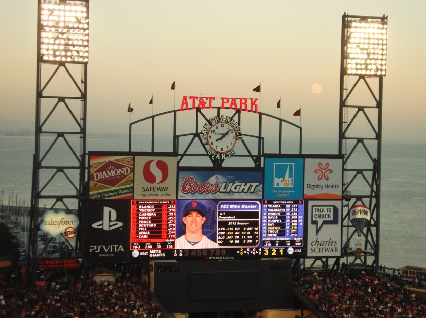 The weather was cool, but perfect, and a full moon came out to shine on McCovey Cove. Unless it is the view of the Rocky Mountains from Coors Field, I’m hard pressed to think of a better ballpark view than AT&T Park. The game was close, with the visiting Mets leaving 13 men on base, yet eking out a 2-1 victory over Matt Cain.