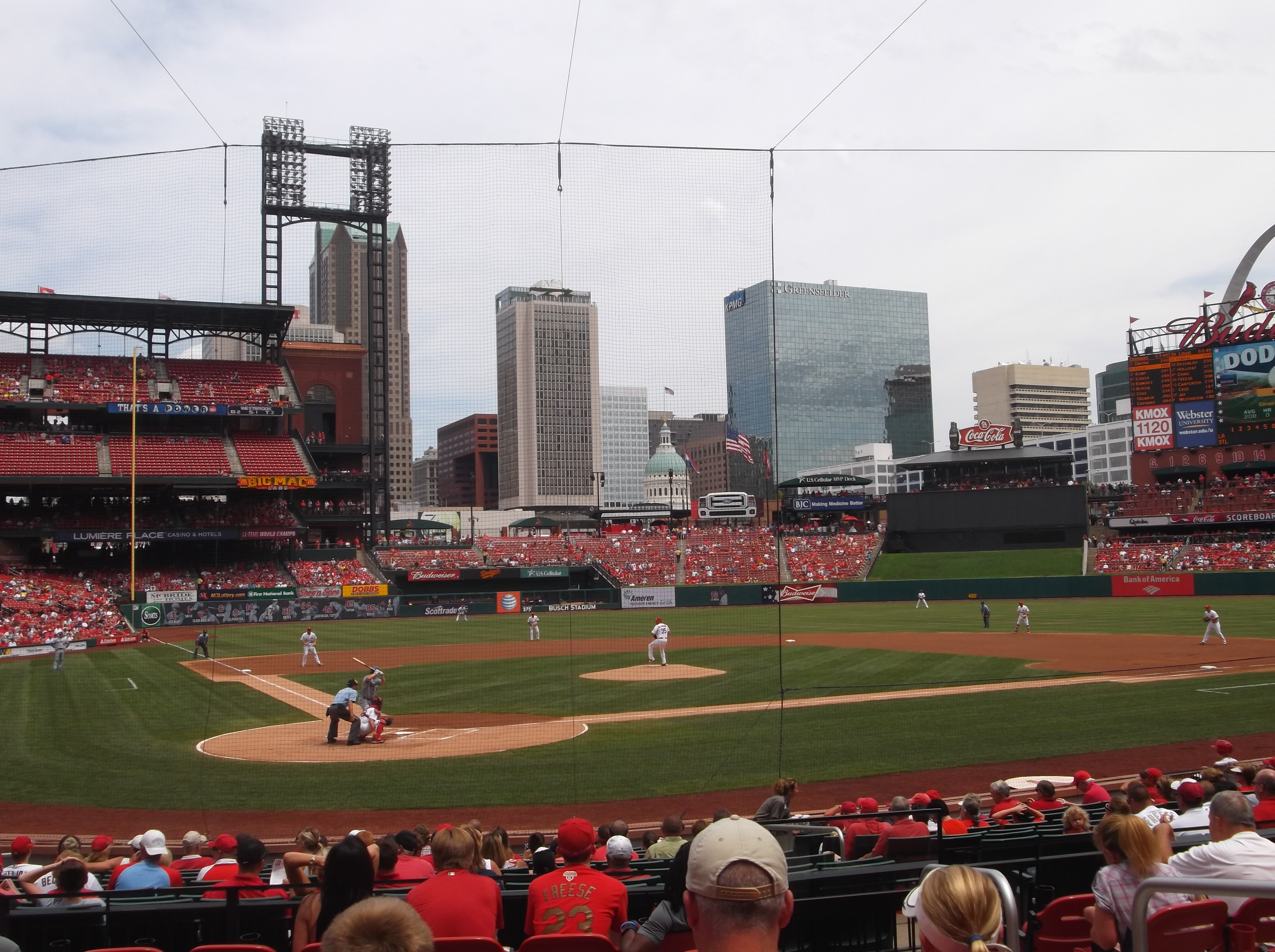 Exactly one month later I was in St. Louis for a speech and meeting, but had the good fortune to take in a St. Louis Cardinals day game in the new Busch Stadium. I went as the guest of a good friend and his wife, and the tickets were – how shall I say this – directly across the diamond from the center field bleachers. Great view! The home-standing Cards were playing the Los Angeles Dodgers and their new man Hanley Ramirez, and the Cardinals won 7-4, punctuated with a strikeout to end the game.