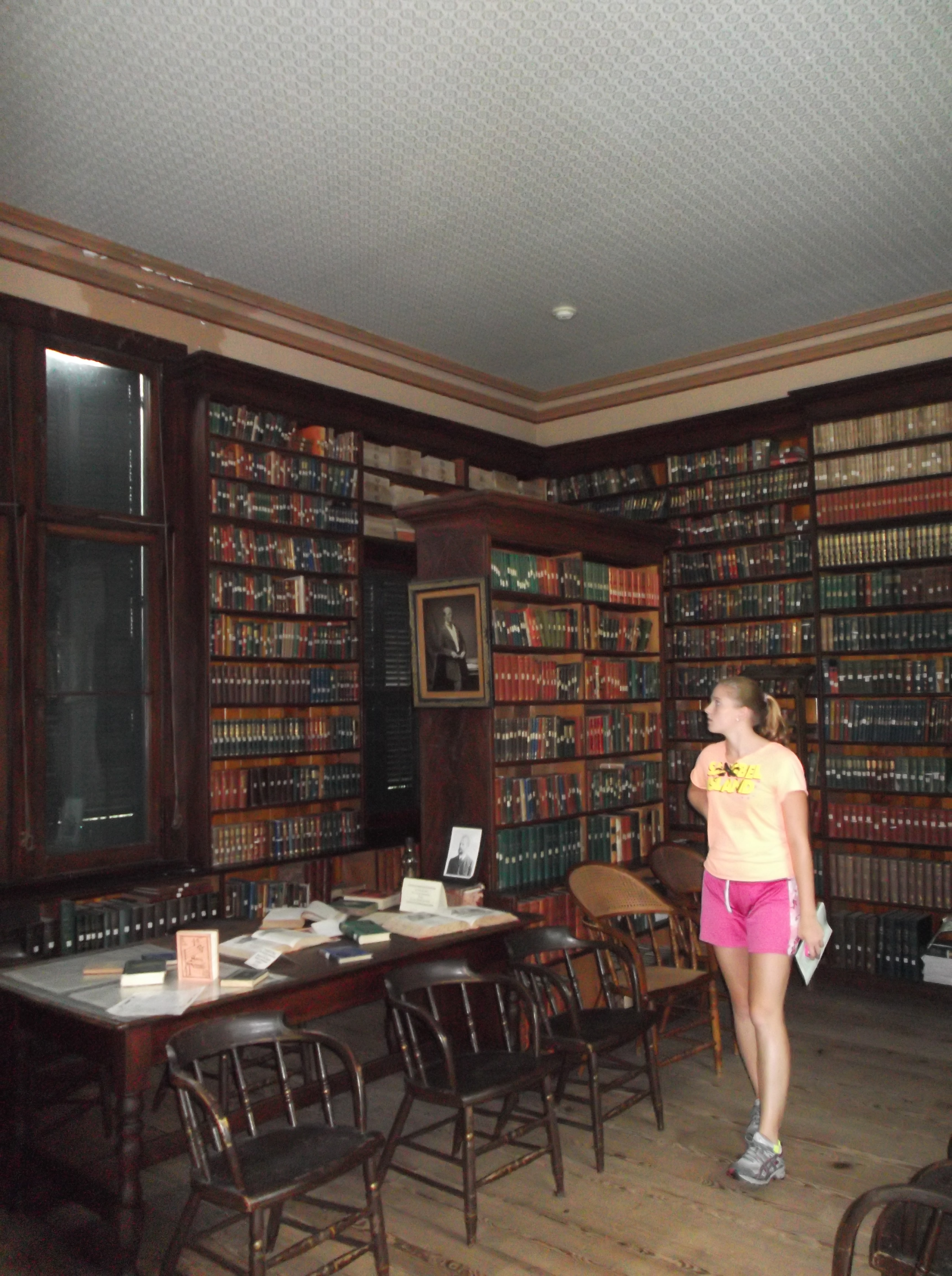 Despite an off-and-on rain, it was great to introduce this unique place to the family today. Everyone loved the intimate and beautiful Christ Church (Episcopal). We had a tasty lunch at the Harrow Road Cafe, reconstructed from the rather sparse building I remember from my youth. Claire was especially taken with the Thomas Hughes Public Lending Library — one of the most remarkable collections to survive under any circumstances. Because of the rain we weren’t able to hike down to the Gentlemen’s Swimming Hole, but we did tour all the public buildings, see the new homes on land that had been originally plotted for homes (but never built), and relive memories of great summers past.