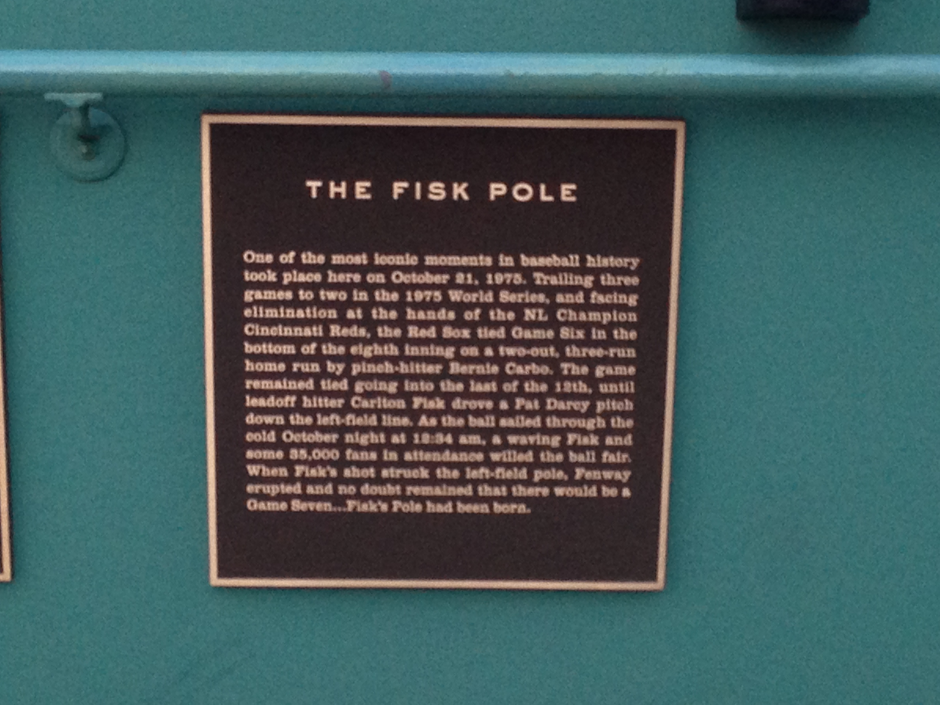 So I’ve posted a picture of the Coors Field sunset above, and a series of Fenway tour pictures below. We got to see the “Fisk pole” (see the video below) which, since this is Boston, isn’t called the “Bucky #)(%*#&@ Dent” pole. As I emailed a few family members and friends from the “old” seats at Fenway, I was in “baseball heaven.”