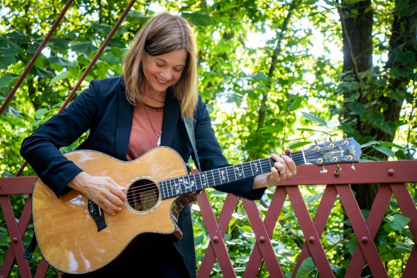 Saturday evening didn’t disappoint. Playing her beautiful Taylor guitar (with an inventive use of capos); singing with that expressive, lyrical, and deep voice; and accompanied only by keyboardist Gary Walters, Newcomer didn’t hit a false note the entire evening. Beginning with I Believe, she sang songs from her soon-to-be-released CD A Permeable Life (such as A Light in the Window) as well as old favorites, including the moving Bare to the Bone.