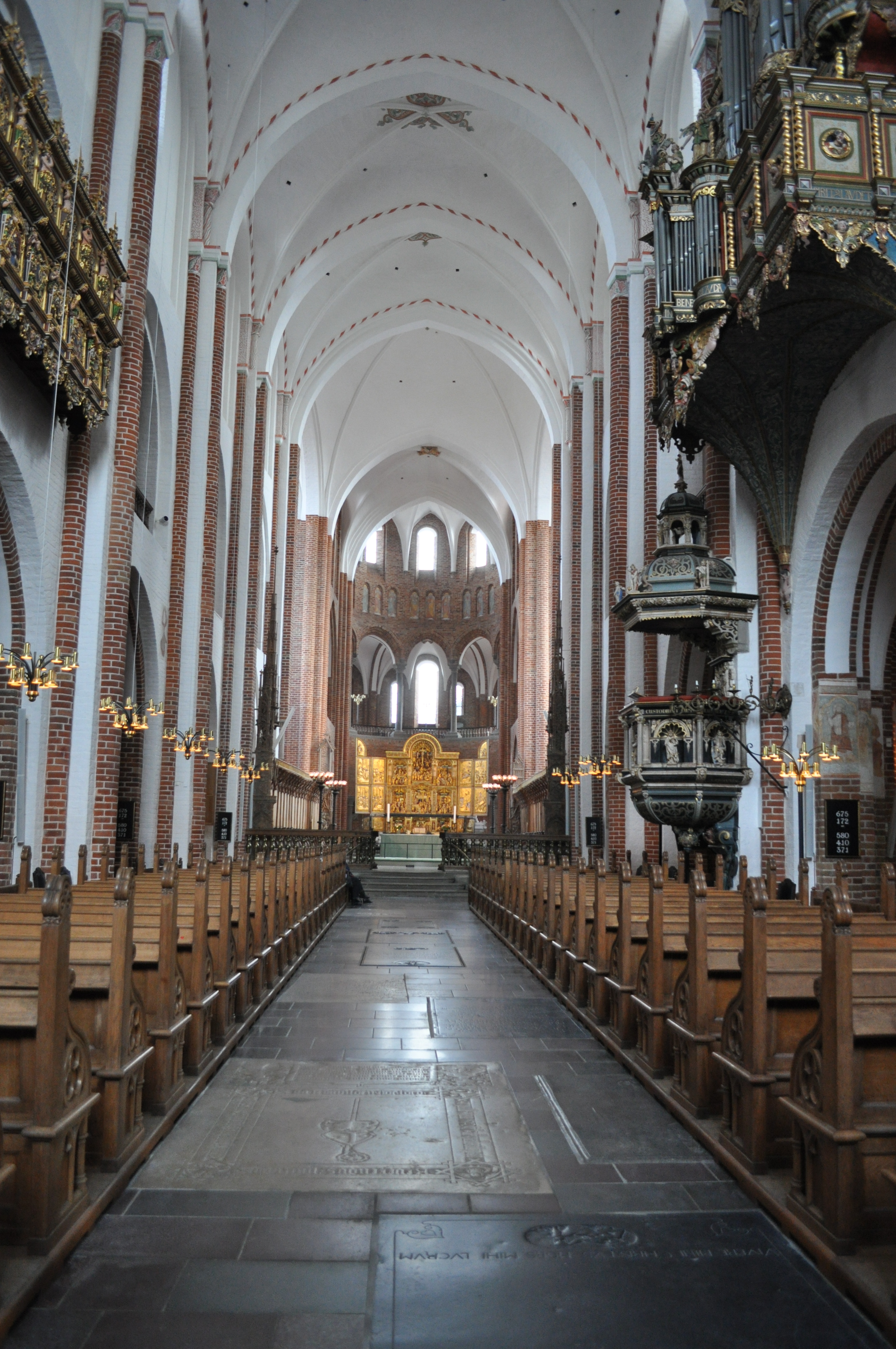 “Built in the 12th and 13th centuries, this was Scandinavia’s first Gothic cathedral to be built of brick and it encouraged the spread of this style throughout northern Europe. It has been the mausoleum of the Danish royal family since the 15th century. Porches and side chapels were added up to the end of the 19th century. Thus it provides a clear overview of the development of European religious architecture.“