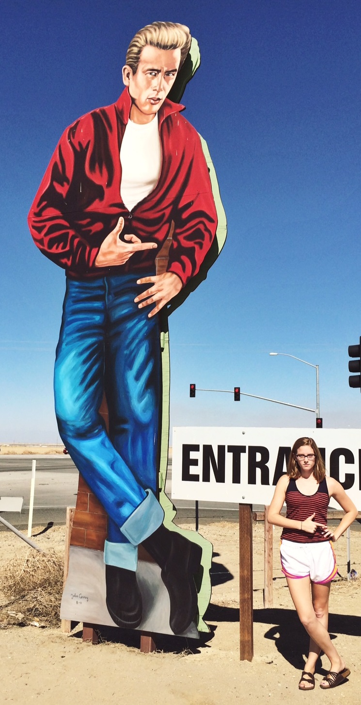So Claire and I thought it would be great to picture her beside the Dean roadside figure, giving her best Rebel Without a Cause pose.