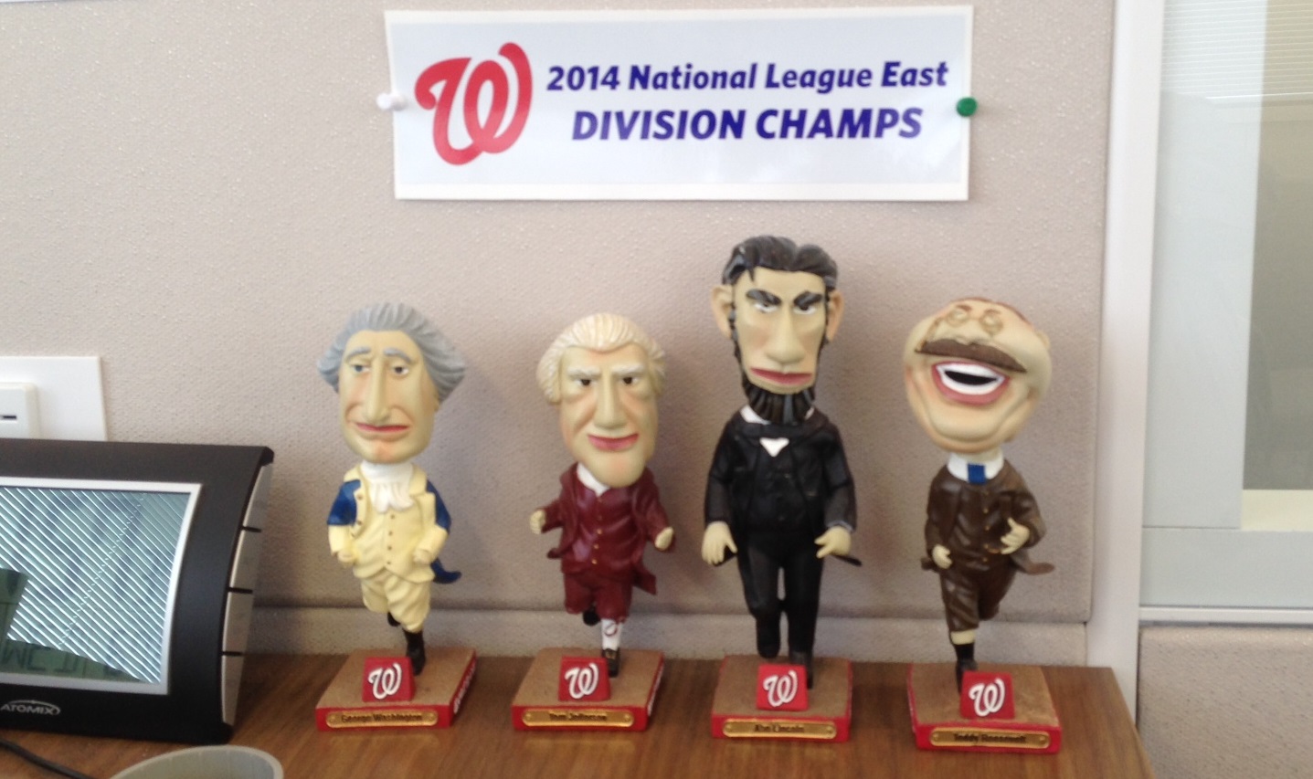 Thanks to my colleague Tom and Section 313 seatmate Kim (she’s the one who added the Woo! to the Section 313 cheer as noted in this Washington Post article), I now have the perfect addition for any Washington-area cubicle. 2014 National League East Division Champs indeed!
