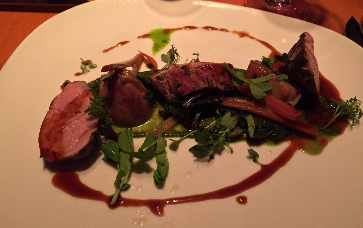 After working through a less-than-satisfactory chef or two, the kitchen has more than regained its footing since Adam Harvey’s arrival in May of 2013 and now regularly turns out meals that rate 4 stars in our book.  Tonight, Candice and I enjoyed the pork tenderloin, while Nancy raved about her Sweet Corn Risotto with grilled prawns, English peas and summer truffles. Steve was delighted with his Housemade Meatballs, and Sarabeth exclaimed over the pan roasted Arctic Char.