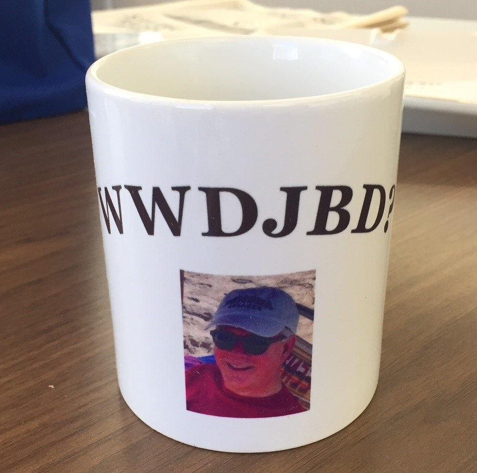 March 5, 2016 WWDJBD The “What Would DJB Do?” mug my staff prepared for sabbatical. You can consider this my personalized “World’s Best Dad” or “World’s Best Boss” mug