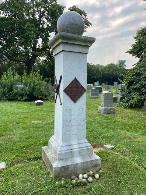 Former colleague Tom Cassidy was in the city over the summer while his son Sean — a minor league umpire — was calling games in Brooklyn. Tom visited Henry Chadwick’s grave and sent along a picture showing more than a dozen baseballs left as memorials from fans. Why baseballs?