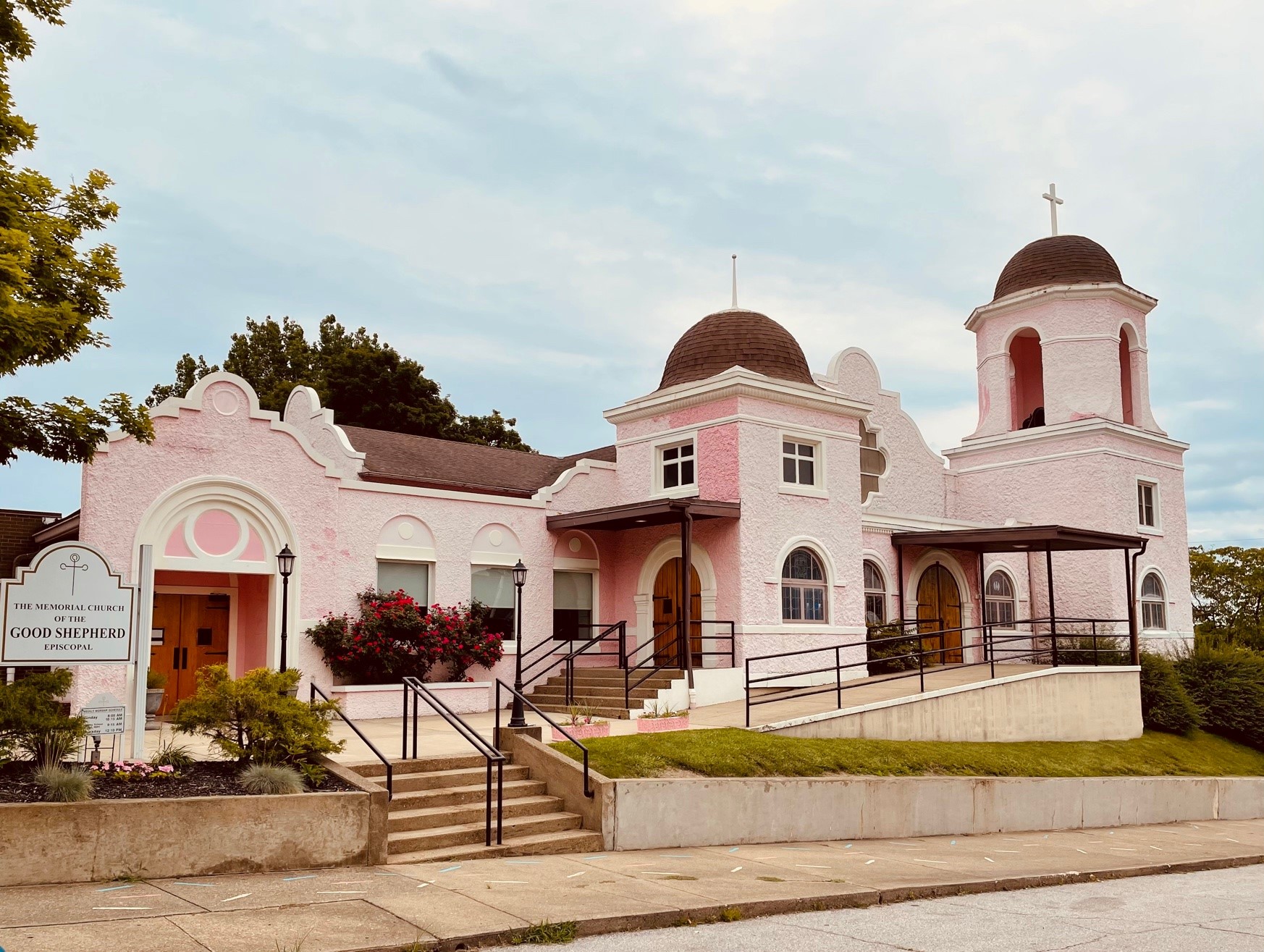 Speaking of churches, while we were in Parkersburg, our hosts said, “Let’s drive by Frank Wade‘s old church.” Frank — our long-time and much beloved rector at St. Albans parish — was a native West Virginian who served in Parkersburg before moving to Washington. After a few turns, up pops this pink Episcopal Church in the heart of West Virginia!