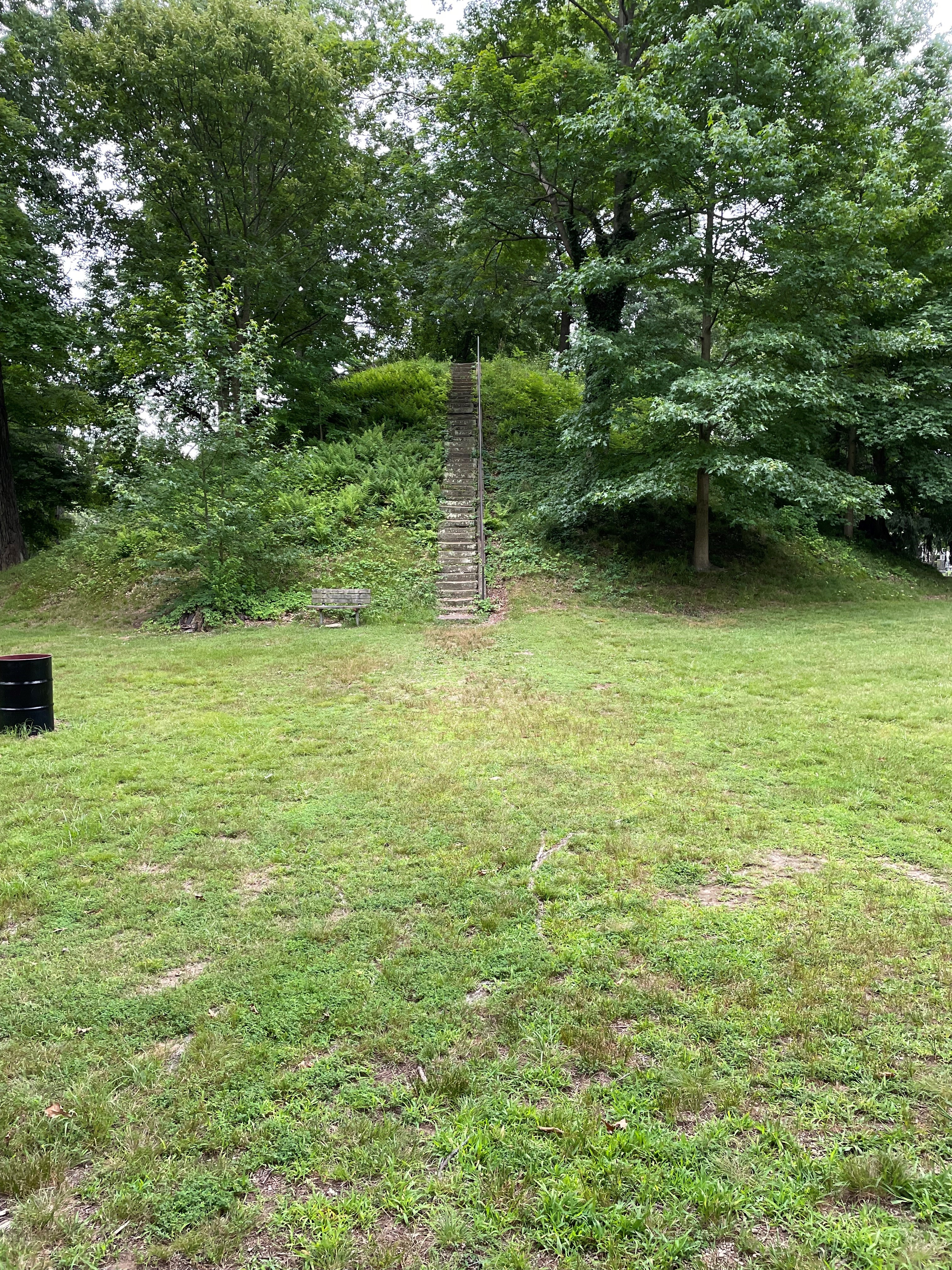 In Marietta, Ohio, we visited The Mound Cemetery — also listed on the National Register of Historic Places. At the center stands a 2,000-year-old burial mound of the Adena culture, surrounded by graves where it is believed more Revolutionary War officers are buried than at any other cemetery in the country. Marietta was part of a land grant given to soldiers in lieu of pay by the new nation, explaining how so many ended up in this beautiful Ohio-river community.