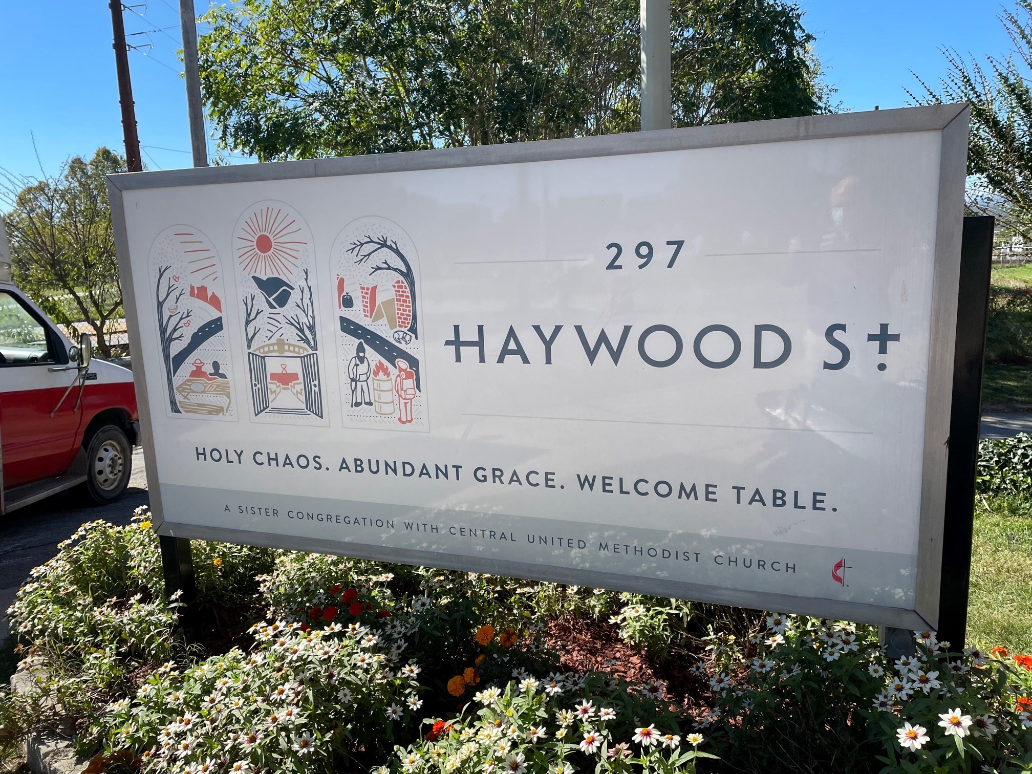 “Haywood Street Congregation was founded in 2009 by Rev. Brian Combs, a United Methodist pastor responding to a call to reach out to individuals living on the margins with a message of acceptance and belonging. The ministry has grown rapidly and today several hundred folks gather each Wednesday and Sunday for table fellowship and worship. Those who eat and worship together are individuals carrying all their worldly possessions in ragged backpacks as well as privileged professionals, stay-at-home moms, students, and the working poor.”