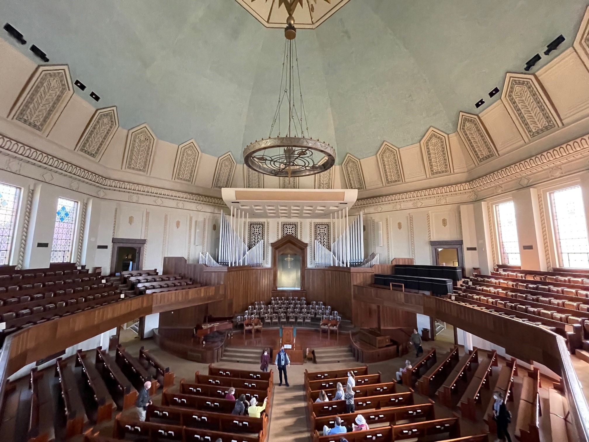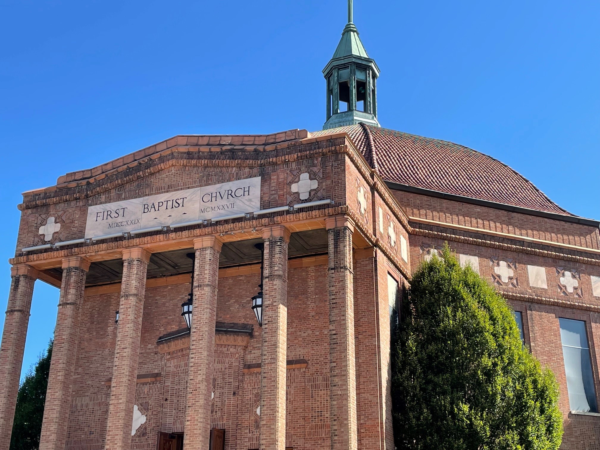 And architectural adventure as found in the surprising First Baptist Church, designed by architect Douglas Ellington. It is a four-story, domed, polygonal brick building with Art Deco design influences.