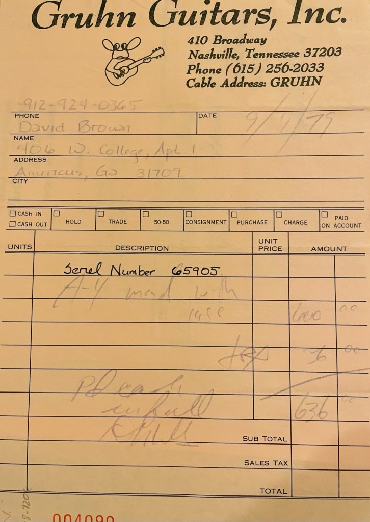 The invoice of my $636 purchase of A-4 #65905 in September of 1979