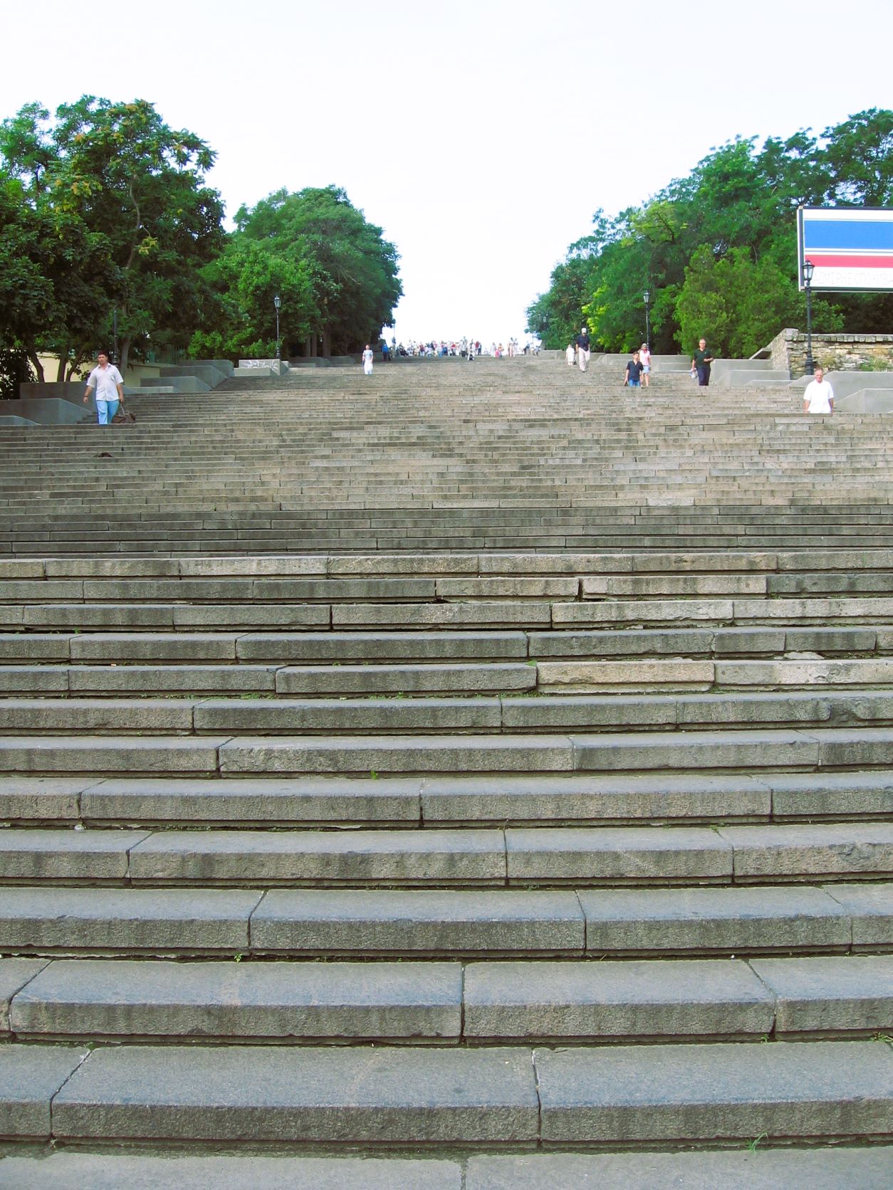 Odessa’s monumental Potemkin Stairs, immortalized in the 1925 silent Soviet-era film The Battleship Potemkin, lead down to the waterfront with its Vorontsov Lighthouse.