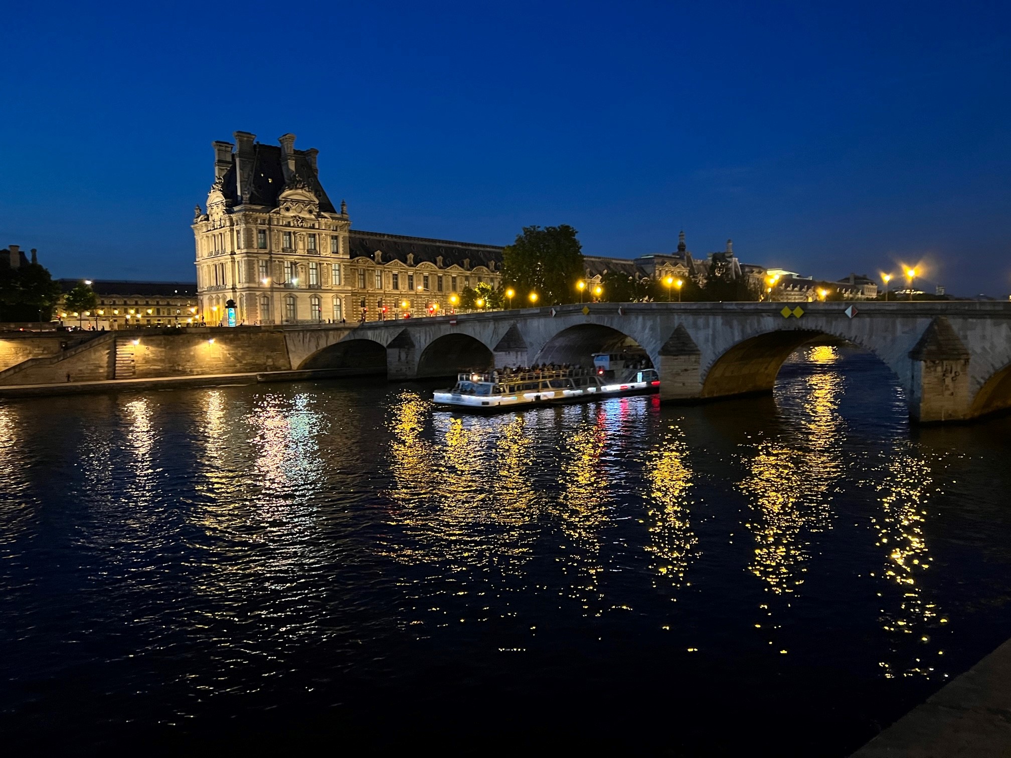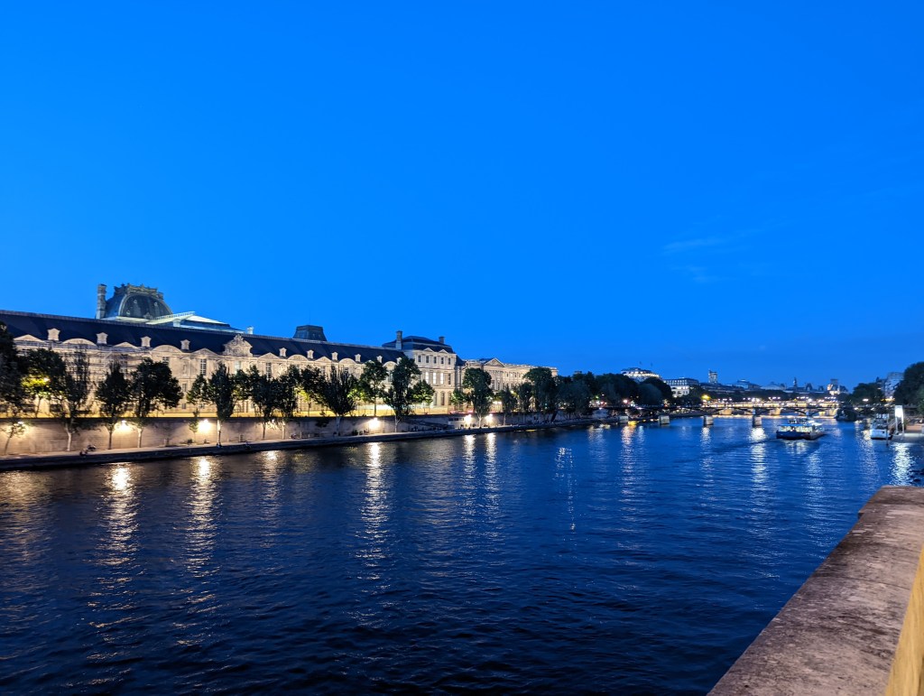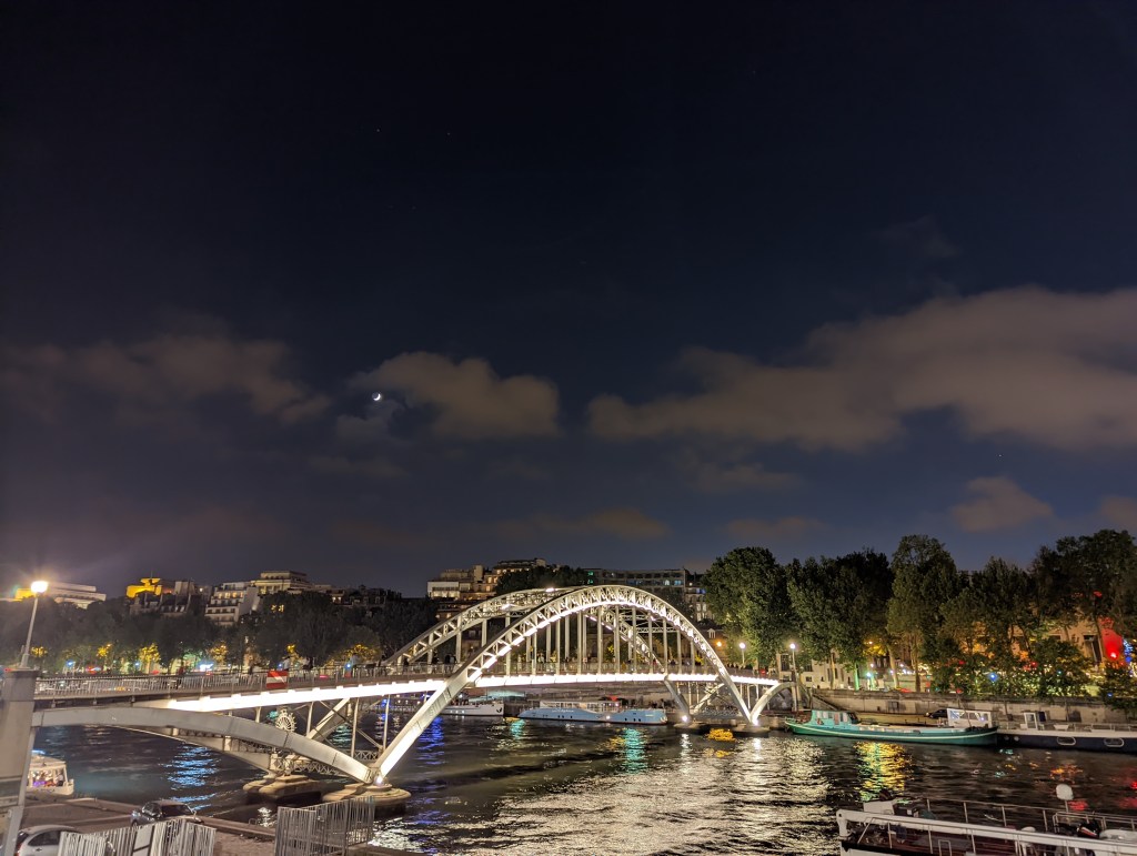 The ultimate prize in any night tour of the City of Light is the illuminated Eiffel Tower. We walked along the river for some 45 minutes one evening, catching glimpses along the way until we turned the corner and caught the full view.
