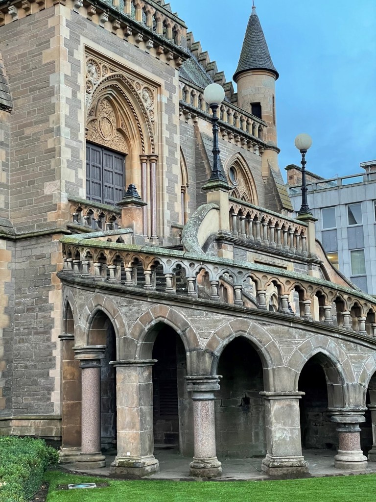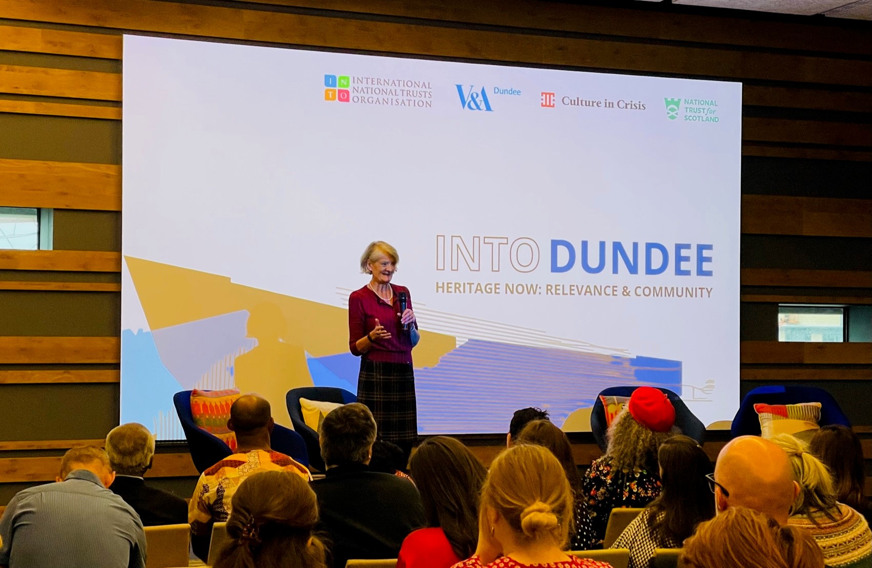 We met in the V&A Dundee, a wonderful modern building which is part of the Victoria & Albert Museum group, located next to the Discovery. This facility, dedicated to design, opened in 2018. Dame Fiona Reynolds, Chair of INTO, welcomed us on Tuesday morning. Throughout the week, Fiona demonstrated, in her own quiet and steady way, the exemplary leadership she provides to the organization. Fiona graced us with insightful, short, and pointed commentary throughout and it was such a delight to see her in person — the first time since she had me as a guest at High Table in 2019 in Cambridge. Through the years I’ve seen how Fiona nurtures relationships, speaking to everyone in ways to support and uplift others while never forgetting a name.