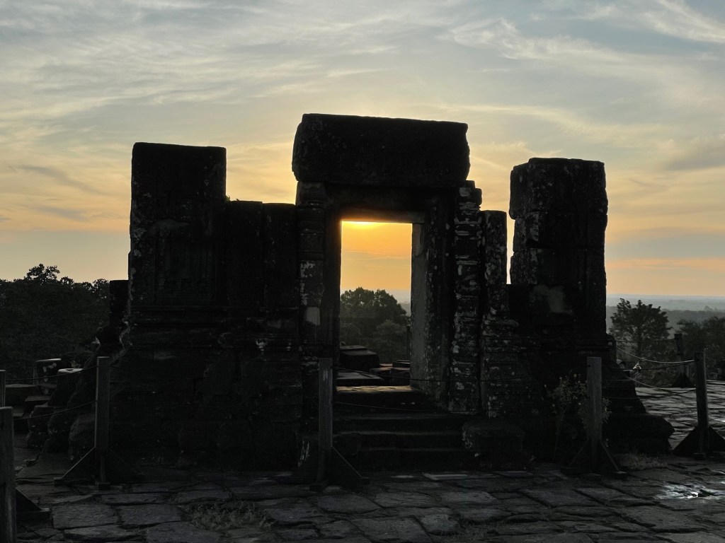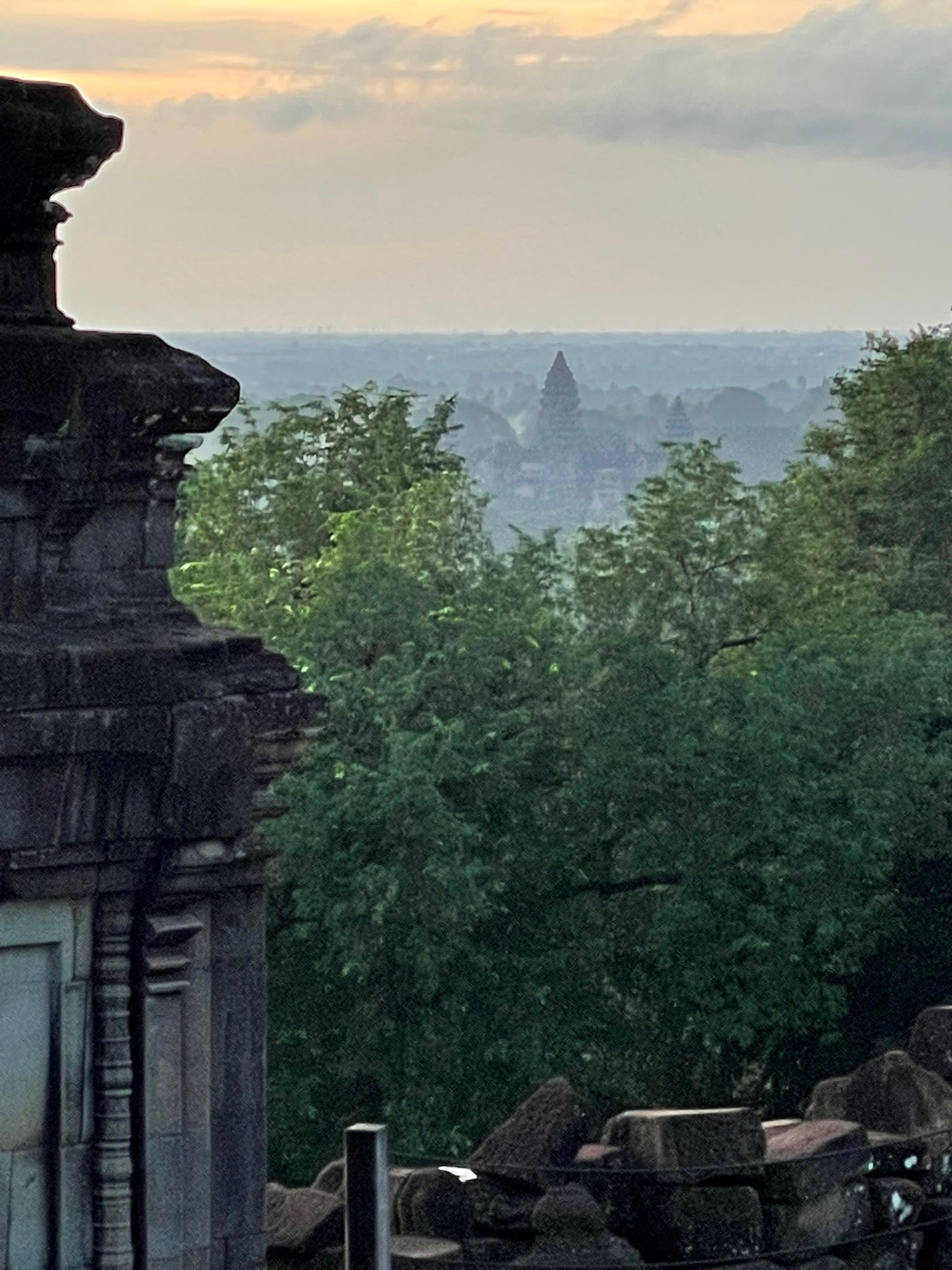 We rose at 4 a.m. this morning in Siem Reap. Our goal was simple: to view the sunrise over greater Angkor on a picture-perfect Cambodian day.