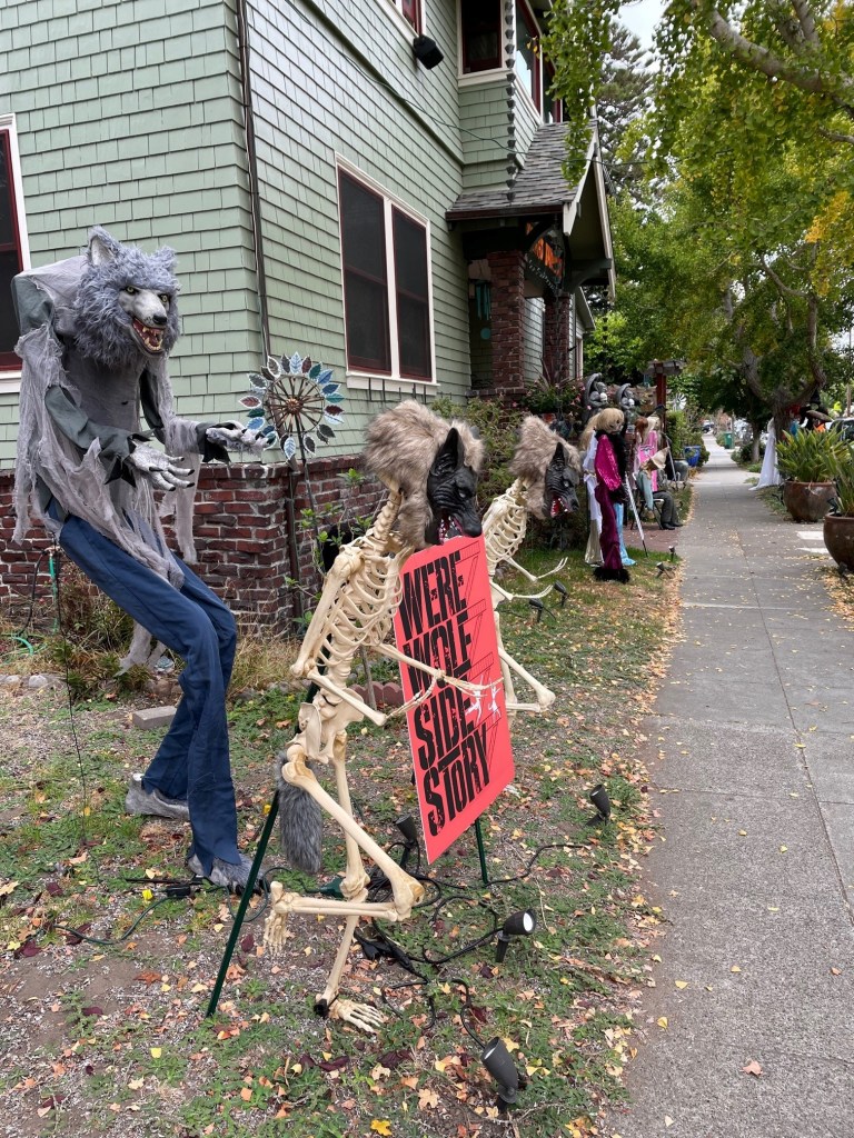 Over the last two years, first in 2020 and then again in 2021, the Saturday Soundtrack before Halloween has featured roots music to celebrate the season. This year I’m traveling out of the country, but I have visited one town which goes all in for seasonal decorations: Alameda, California.