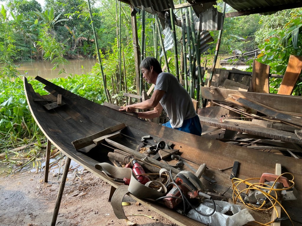 A typical traditional boat to move off the ship and travel up the small waterways around the islands.