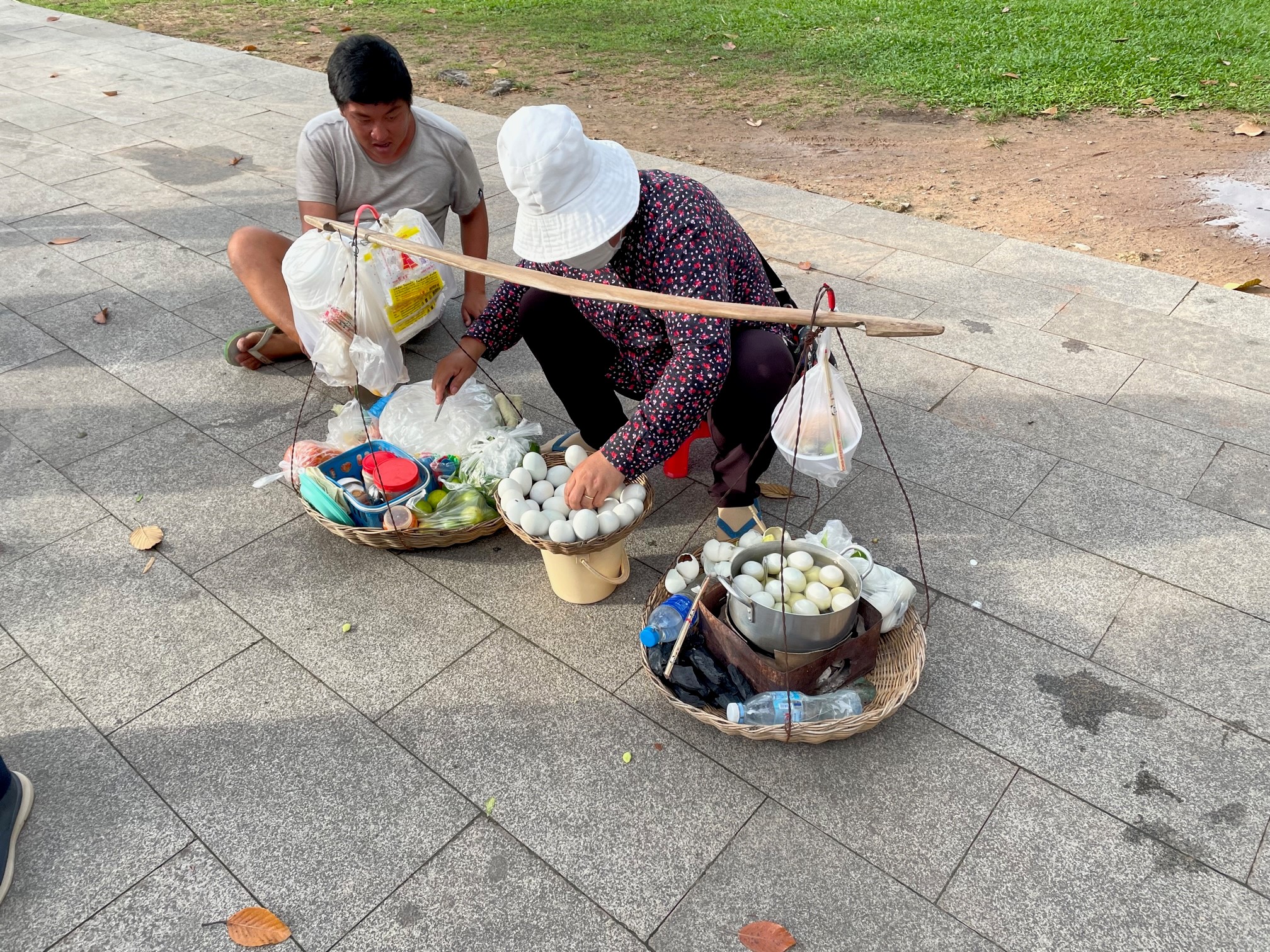 Tek, our Cambodian guide, eats one of the eggs as we all declined his offer to join in