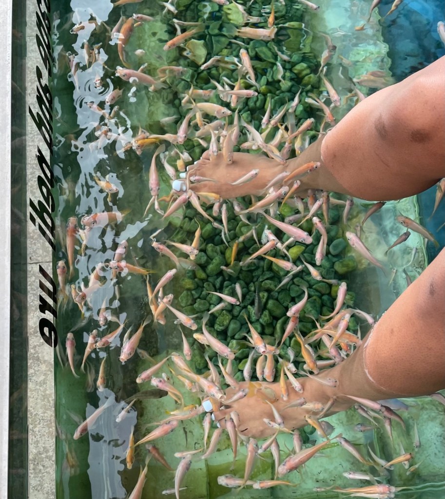With thanks to the young lady who gave me permission to photograph her feet swimming with the fishes