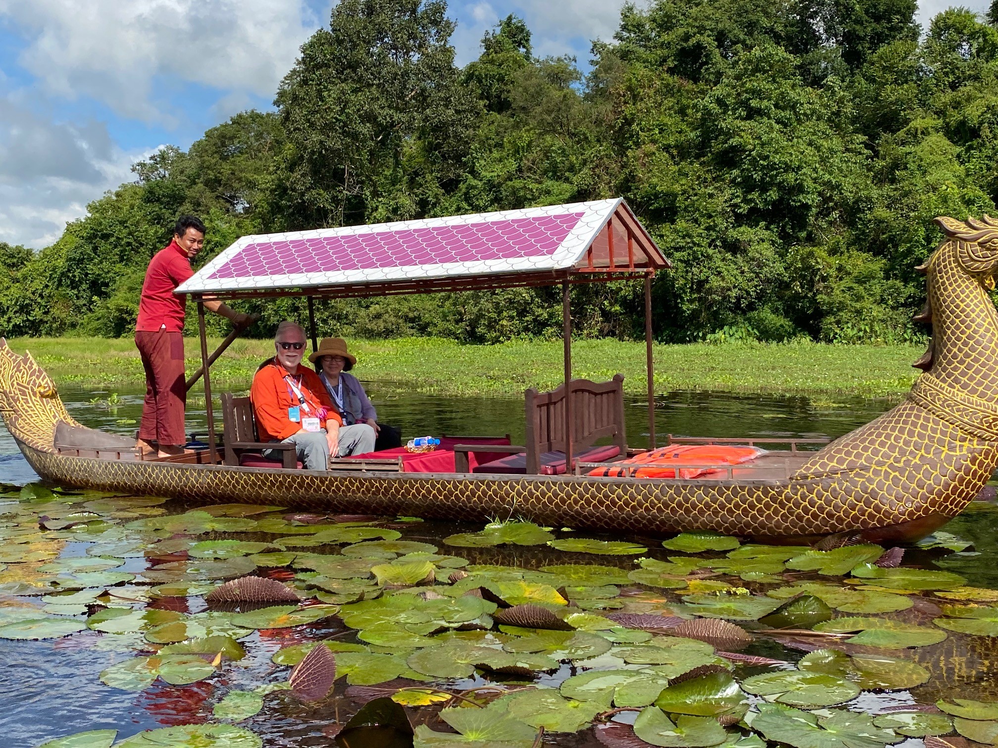 Traveling around the moat at Angkor Thom via gondola (credit Sylvia Griffin)