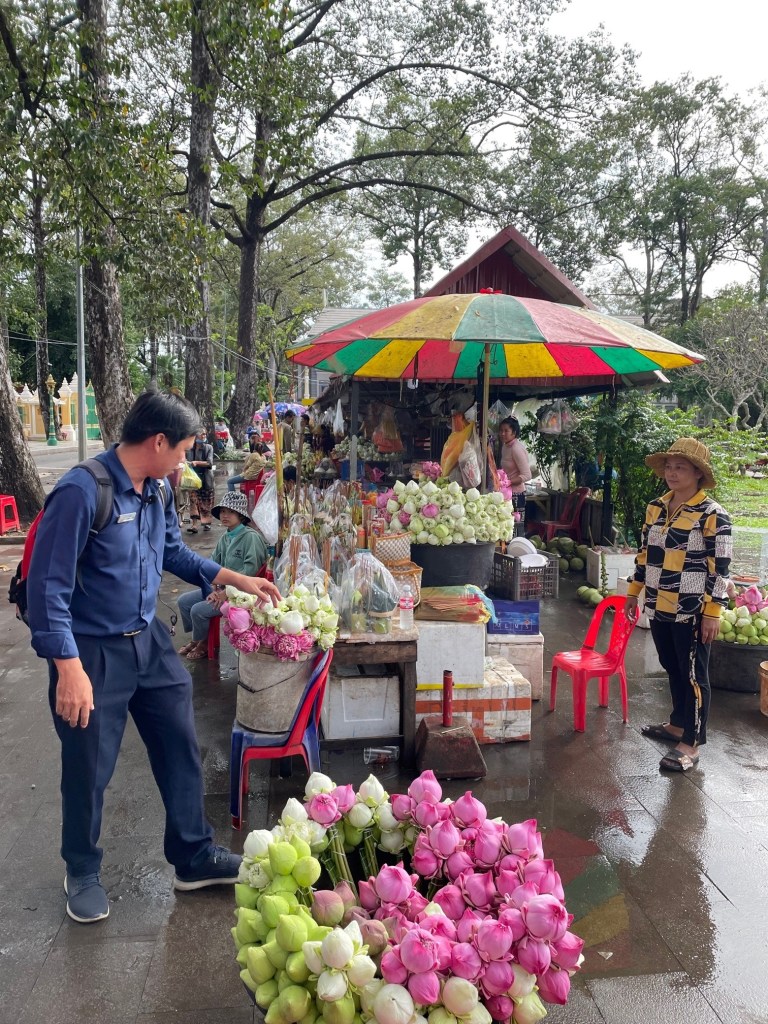 Flowers for sale beside the Buddhist temple in Siem Reap