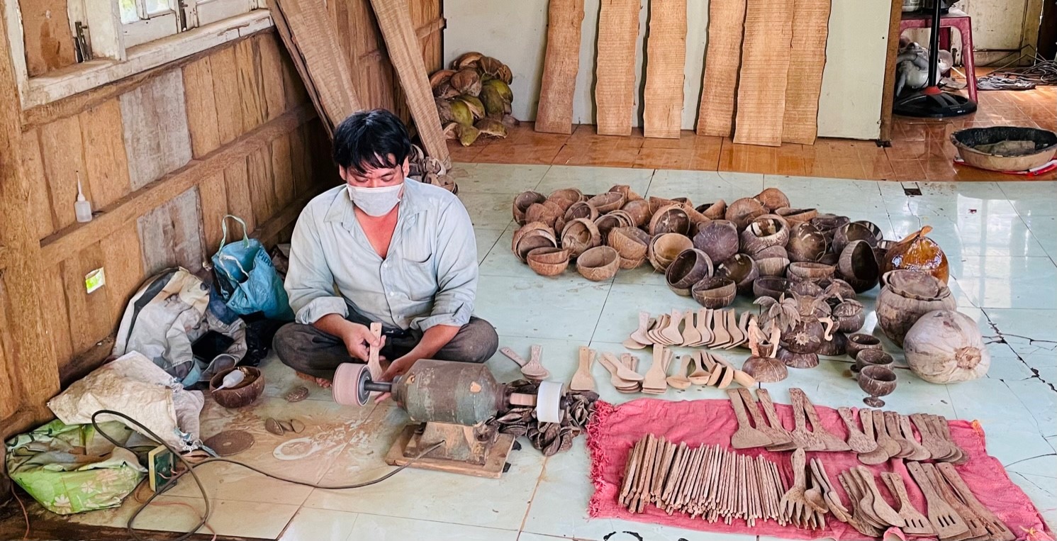This Vietnamese woman cooking with rudimentary utensils in an open-air kitchen was an all-too-typical scene on the islands along the Mekong