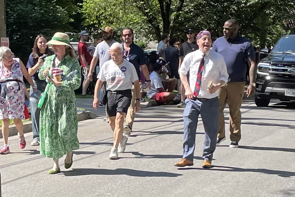 One of the great present-day defenders of that founding principle, the courageous and highly effective Jamie Raskin, served as the Grand Marshal for his hometown parade. Sporting one of his stylish Stevie Van Zandt bandanas as he continues his recovery from treatment for diffuse large B-cell lymphoma, Raskin could not be bound by the car provided for his use, once again walking the route and working the crowd like the pro he is.