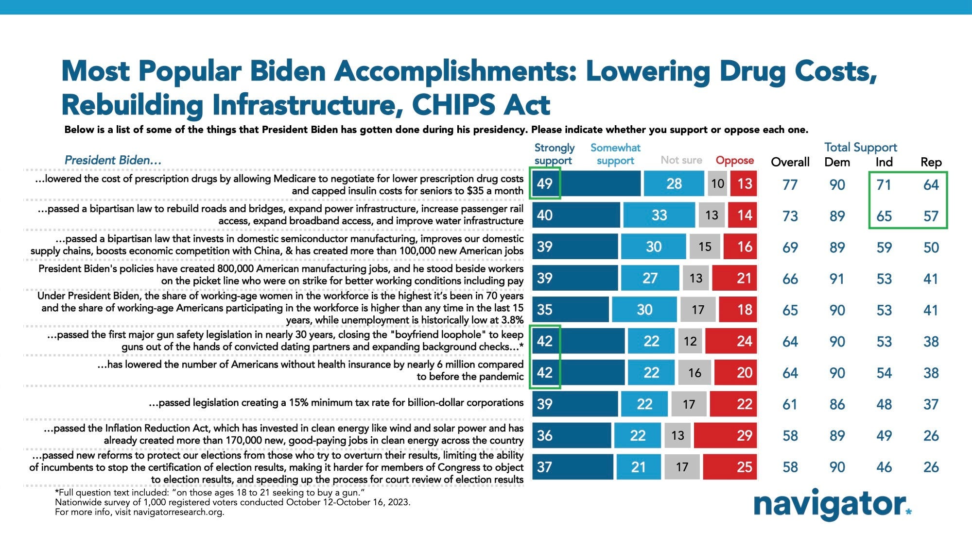 “Voters don’t know much about what Biden has done, and when they are informed (what campaigns do) his approval jumps.” Navigator just released some new research looking at this dynamic, which includes these two key charts:
