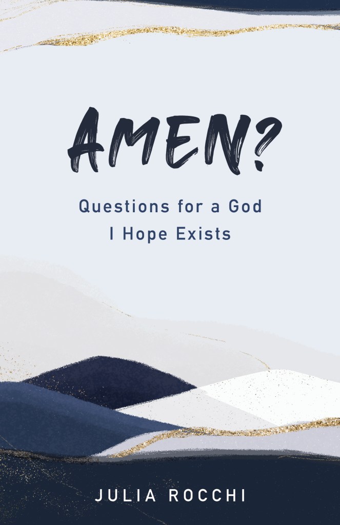 AMEN? Questions for a God I Hope Exists (2022) by Julia Rocchi is full of wisdom, vulnerability, and questions asked in an open and seeking spirit. Essays, quotations, poems, and prayers probe the mysteries that make up life in what one reviewer sees as, “a psalter for the post-modern, exhausted age.” Julia writes of a God who is imminently approachable and ready to answer our deepest questions. When we “ask questions of God, the Universe, whatever it is that we believe to be bigger than ourselves,” Julia notes, “we do so not to arrive at answers, but to inspire still more questions.” In this post she answers some of mine.
