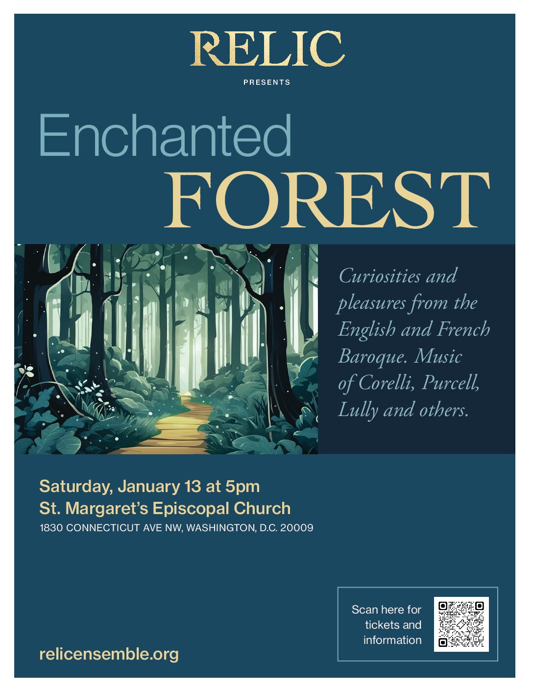 The members of Relic are on a mission. Formed in 2022 by alumni of the Juilliard Historical Performance Program, these lovers of early music are skilled musicians dedicated to presenting compelling and captivating live performances to communities across the country, especially those with little access to live early music. They believe in a “democratic and tolerant environment,” which leads them to make early music accessible to people from all backgrounds. They do this through free concerts, open rehearsals, and educational events for students with no prior knowledge of early music, such as the event George attended at St. Margaret’s Episcopal Church in Washington, where they journeyed through the Enchanted Forest. “From elves and nymphs to trolls and witches,” this program brought forward pleasures and curiosities from the English and French Baroque periods with music of Corelli, Purcell, Lully, and others.
