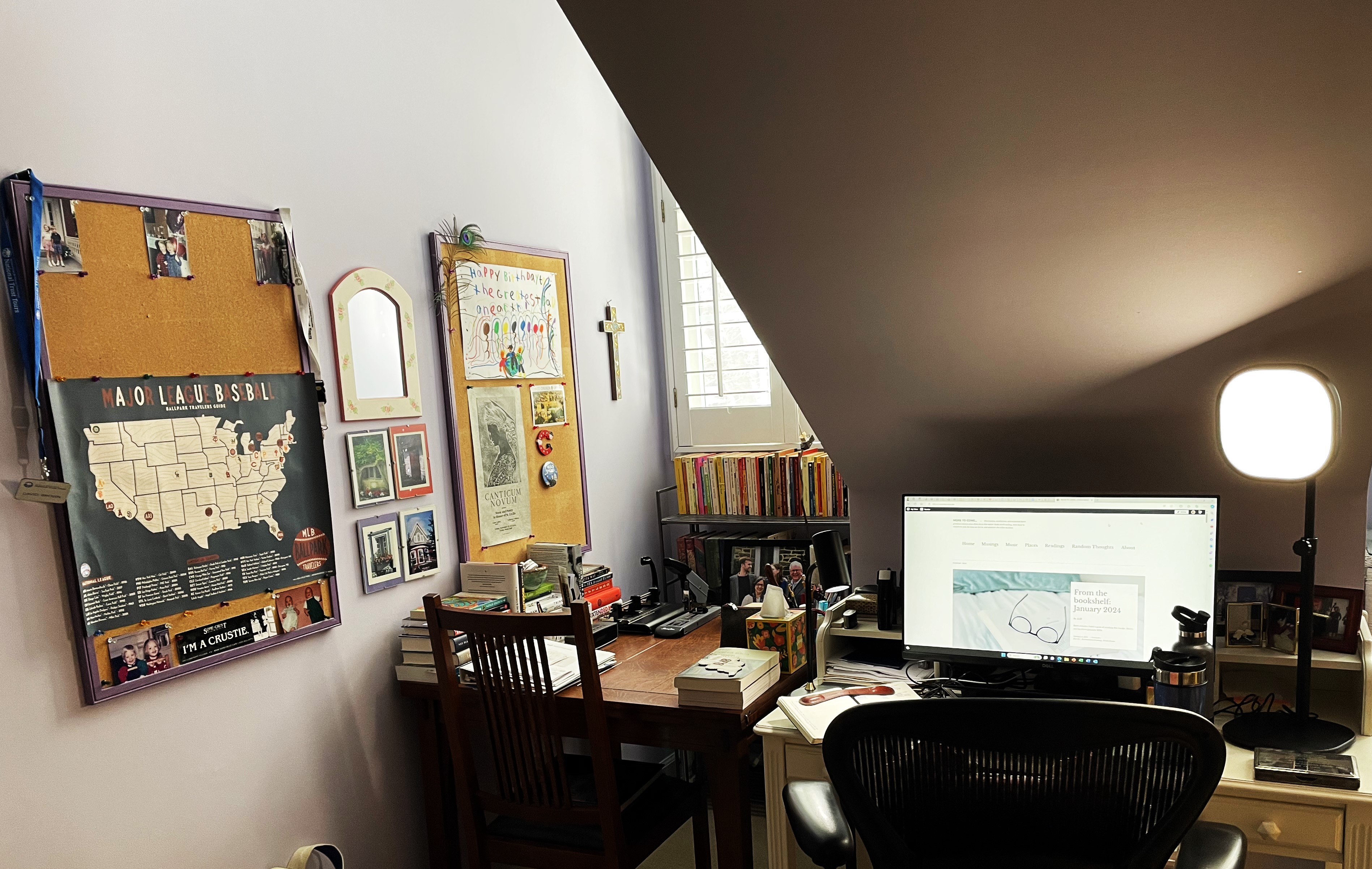 In these post-pandemic years of remote work, many have moved from makeshift solutions to create more permanent home offices. While retirement has all but ended the necessity of telework for me, I’ve nonetheless been thinking about the space I inhabit and the ways I honor and use it day in and day out. I’ve also thought about how the home office can easily intrude on the important time when we rest.