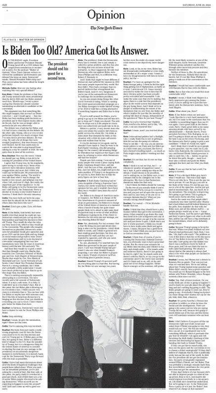 On Saturday morning I opened The New York Times and found a full-page onslaught by three Times opinion columnists confident of their own righteousness with the clickbait title: “Is Biden Too Old? America Got Its Answer?” *