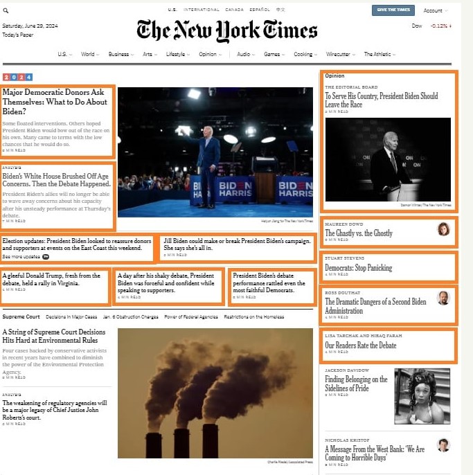 These opinion columnists weren’t outliers. No, the “news” division of the Times joined with the editorial page to hammer on Biden’s debate performance. It is the “but her e-mails” performance all over again.