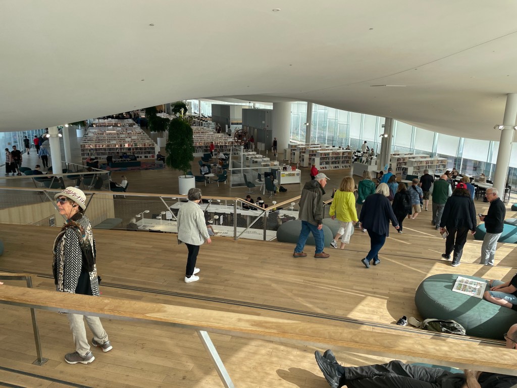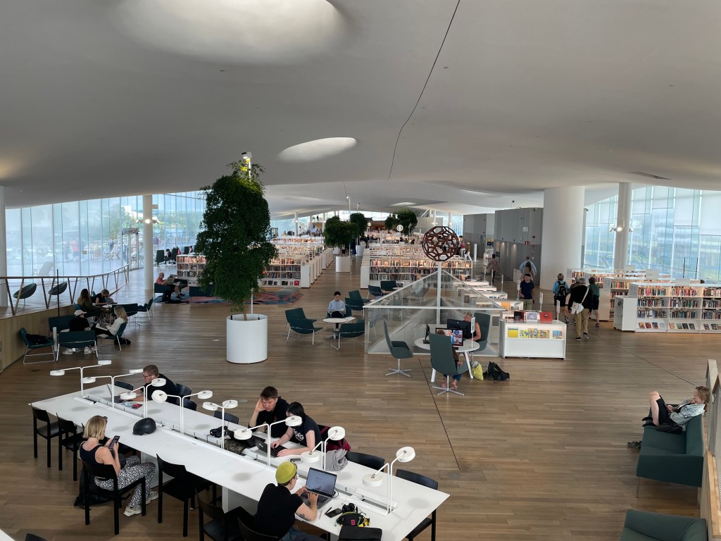 I had high hopes for the Helsinki public library after having read about this amazing new gathering place in the heart of the capital city. As the son and brother of librarians, I felt special pride in seeing how a city and a country can thrive when they emphasize the many important characteristics that go into the modern library. That excitement only built as we approached the main entrance.