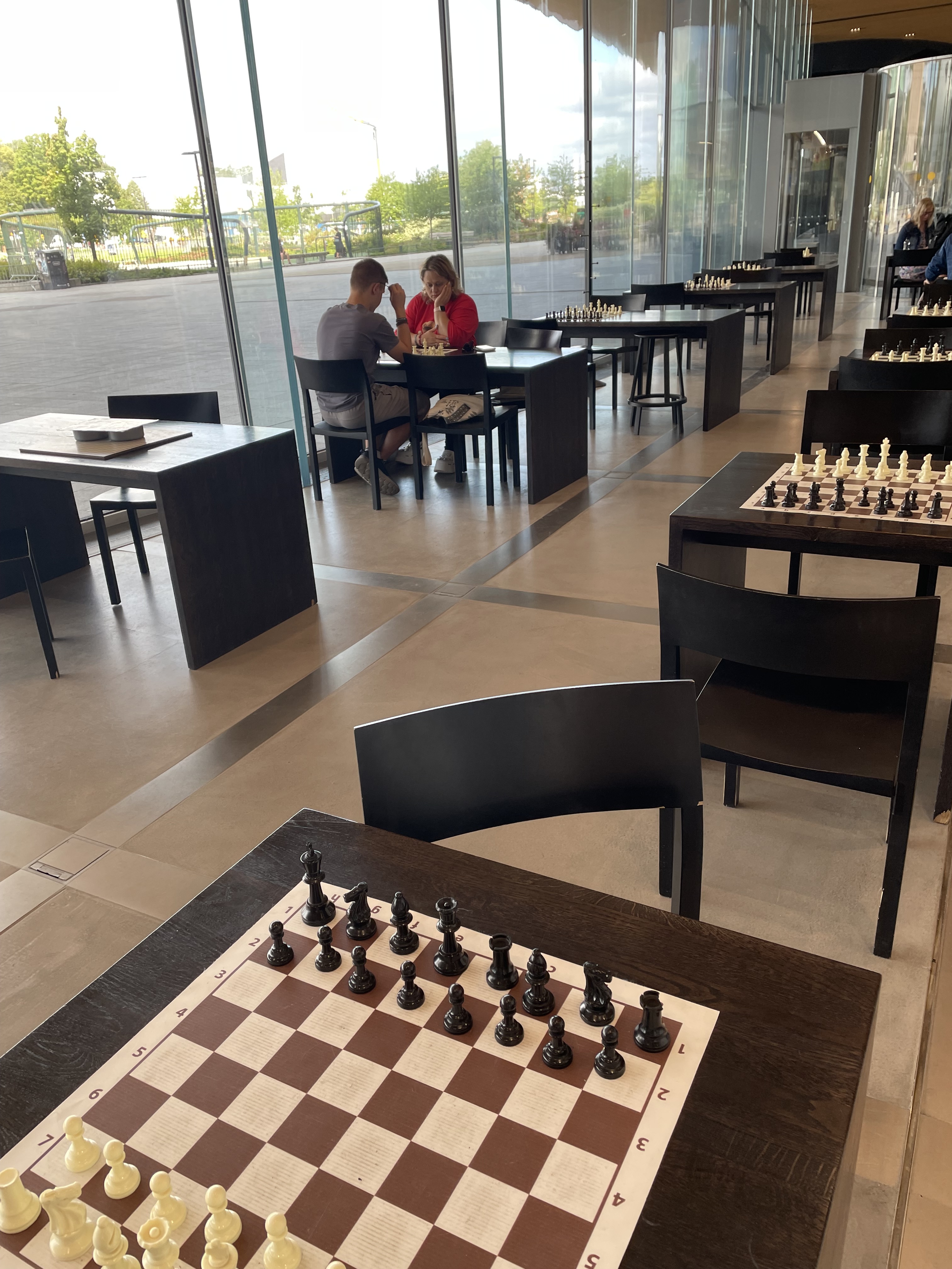 It seems oh so appropriate for the city’s “living room” to greet its clientele with tables set up for the planned or spontaneous game of chess.