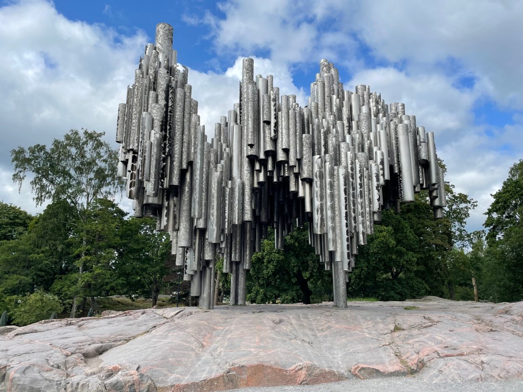 Our final stop of the morning was at the beguiling monument to Finland’s most celebrated composer, Jean Sibelius. Erected in 1967 by Finnish sculptor Eila Hiltunen, the abstract monument resembles a sound wave made from clusters of organ pipes. It consists of over 600 steel pipes unevenly grouped together at various heights, with the highest pipe reaching over 27 feet in the air.