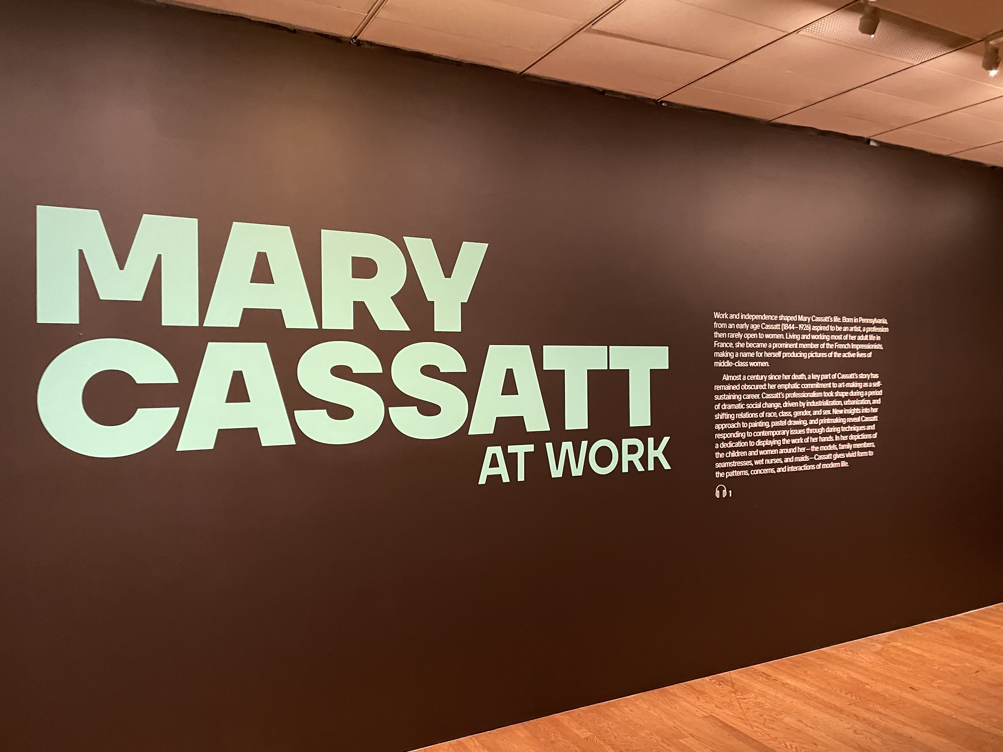 I was taken by the paintings, drawings, and prints of course, but also by the curators’ descriptions of how what we are learning about Cassatt’s work confounds the stereotype of a female artist who simply painted touching, sentimental scenes of mothers and their children. In fact, most of those adults depicted are working as caregivers, providing new dimensions to understanding these subjects.