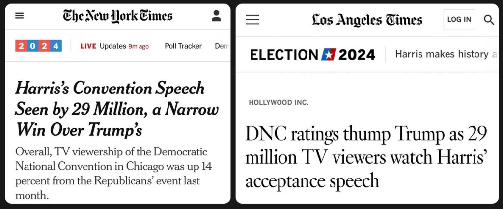 “All that crap that rocketed out of Donny’s mouth at the Republican convention? Those were just claims. But Kamala? False and misleading.“